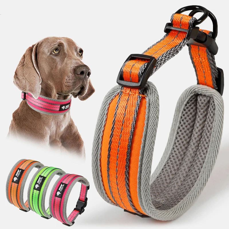 Reflective Mesh Padded Dog Collar: Comfort & Safety for Medium to Large Breeds