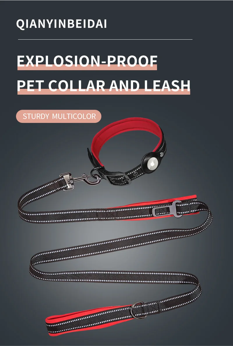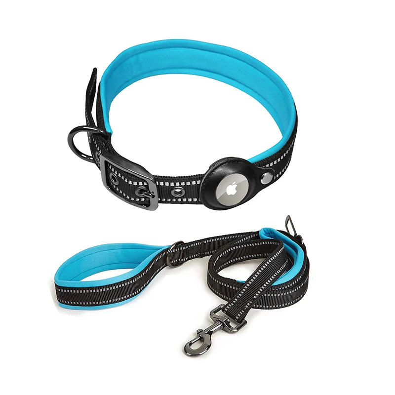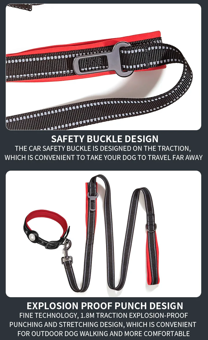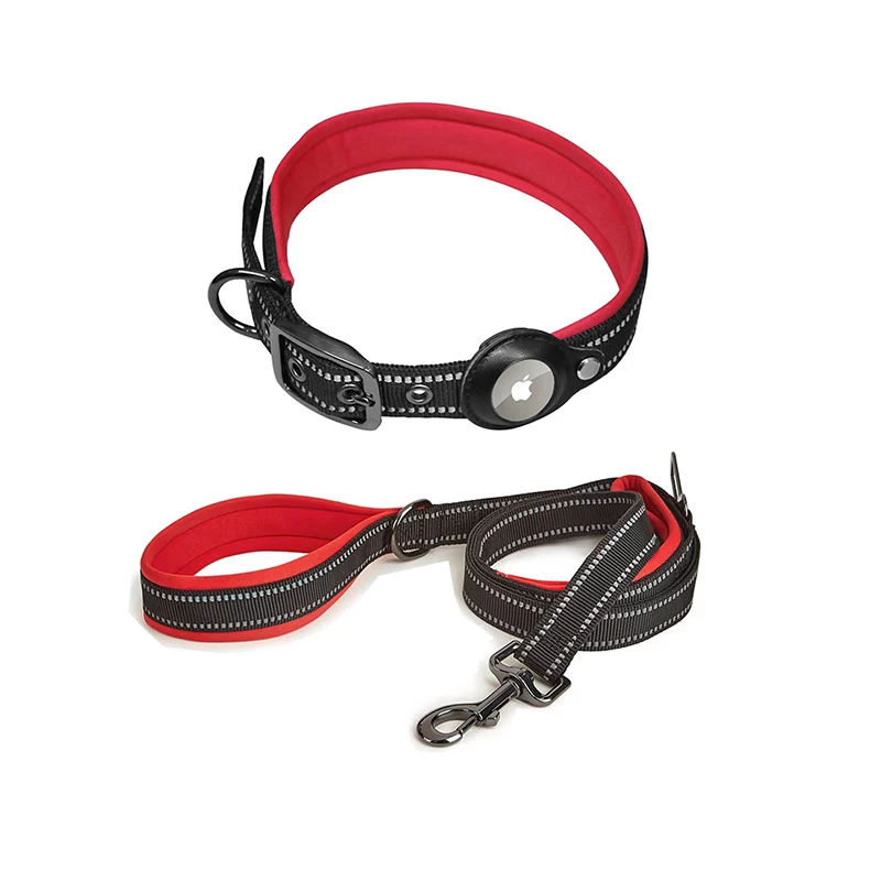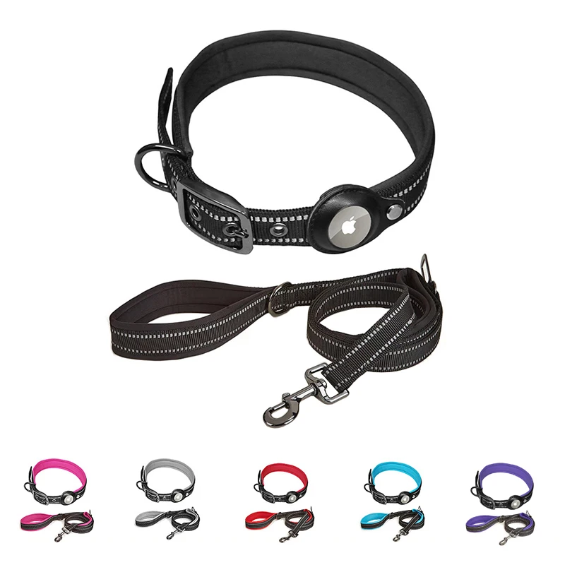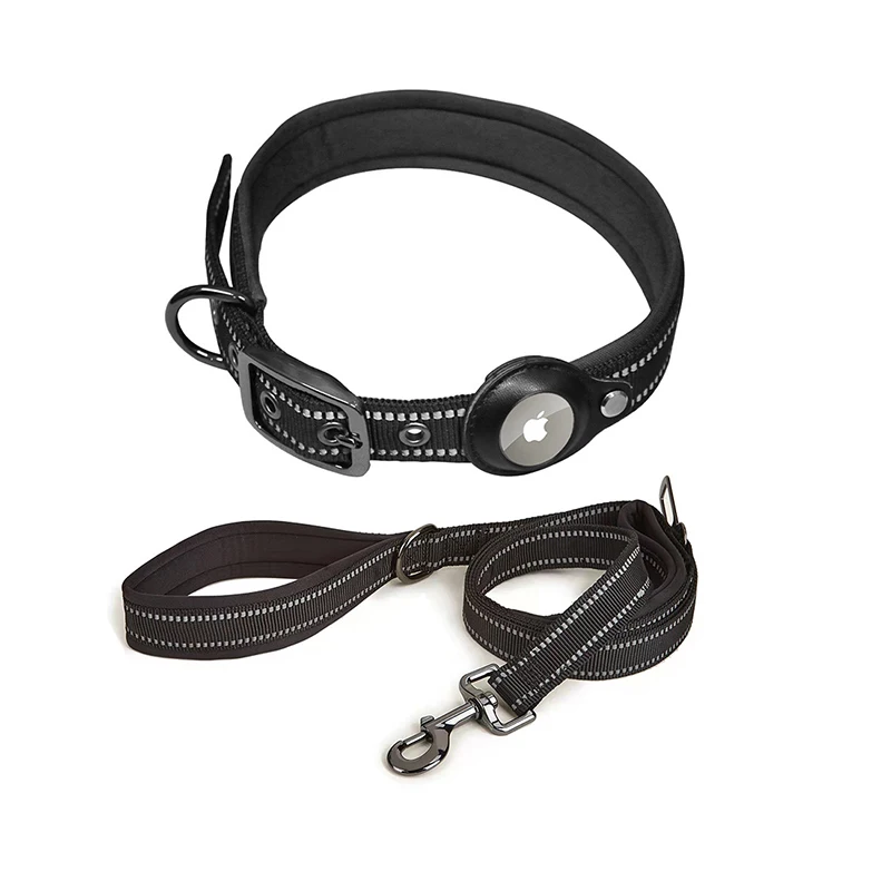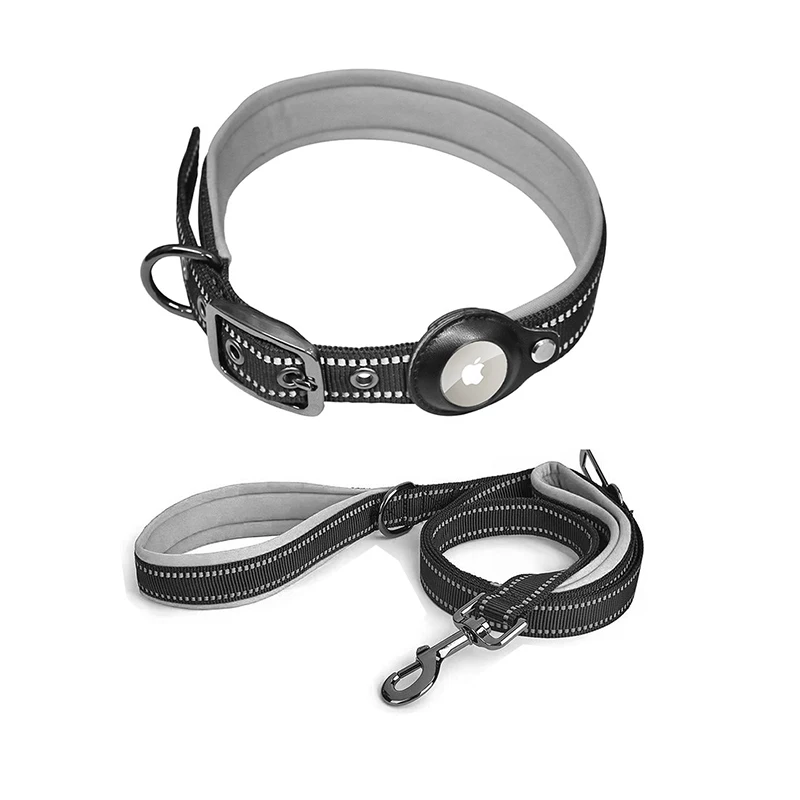 Reflective Rover, Durable Adjustable Dog Collar Leash Set with Airtag Holder