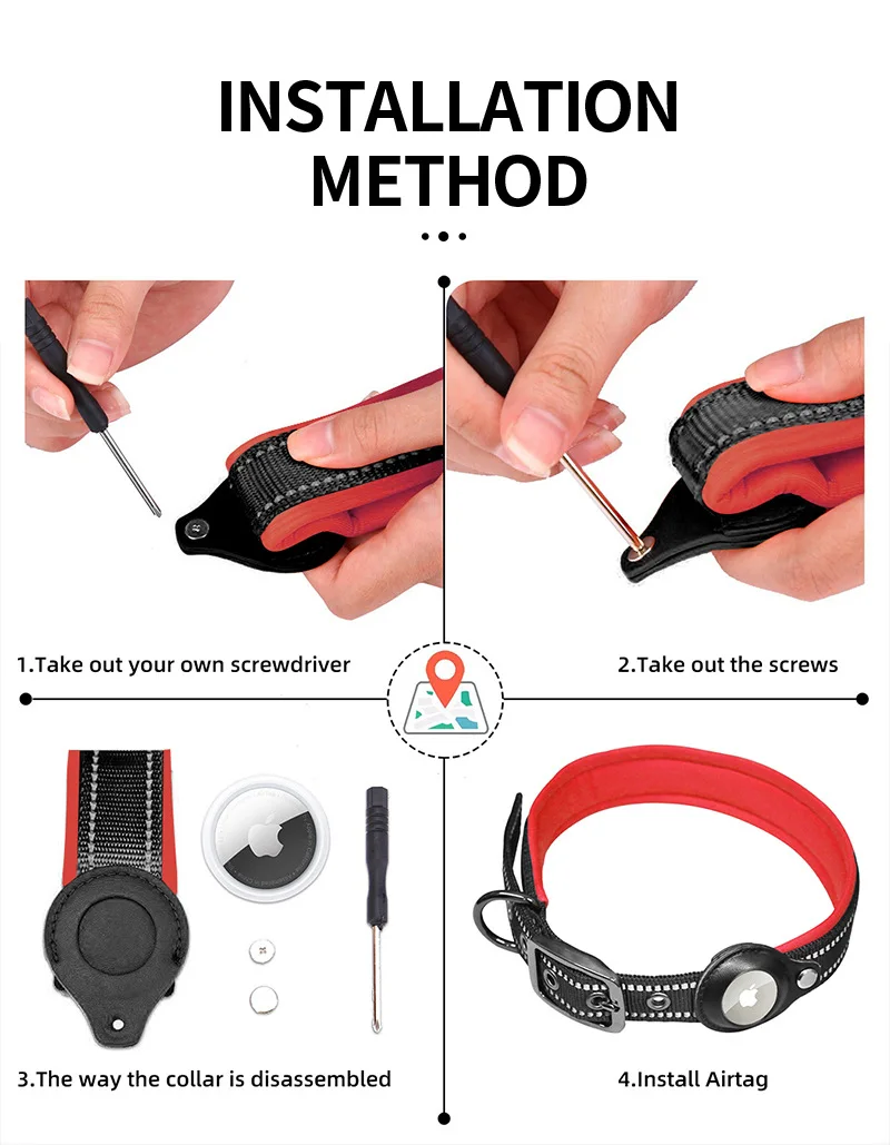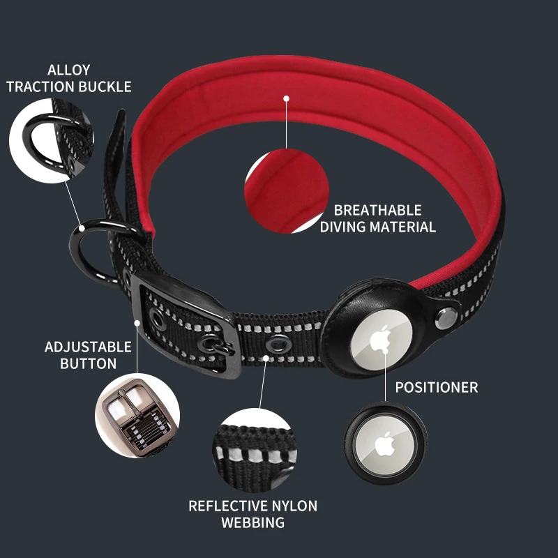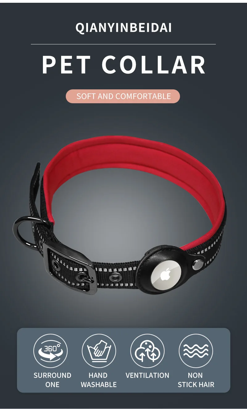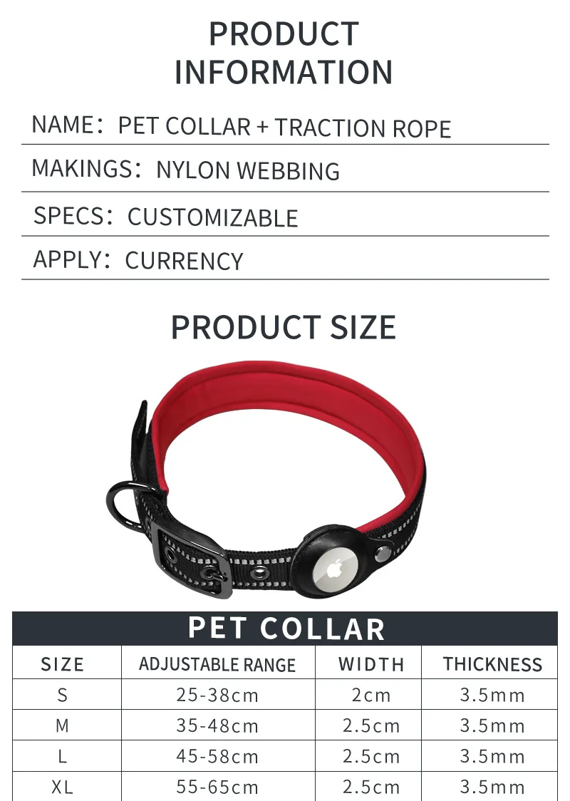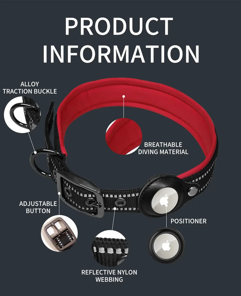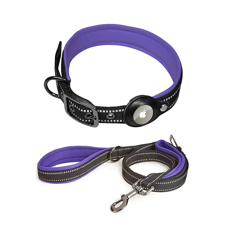Reflective Rover, Durable Adjustable Dog Collar Leash Set with Airtag Holder