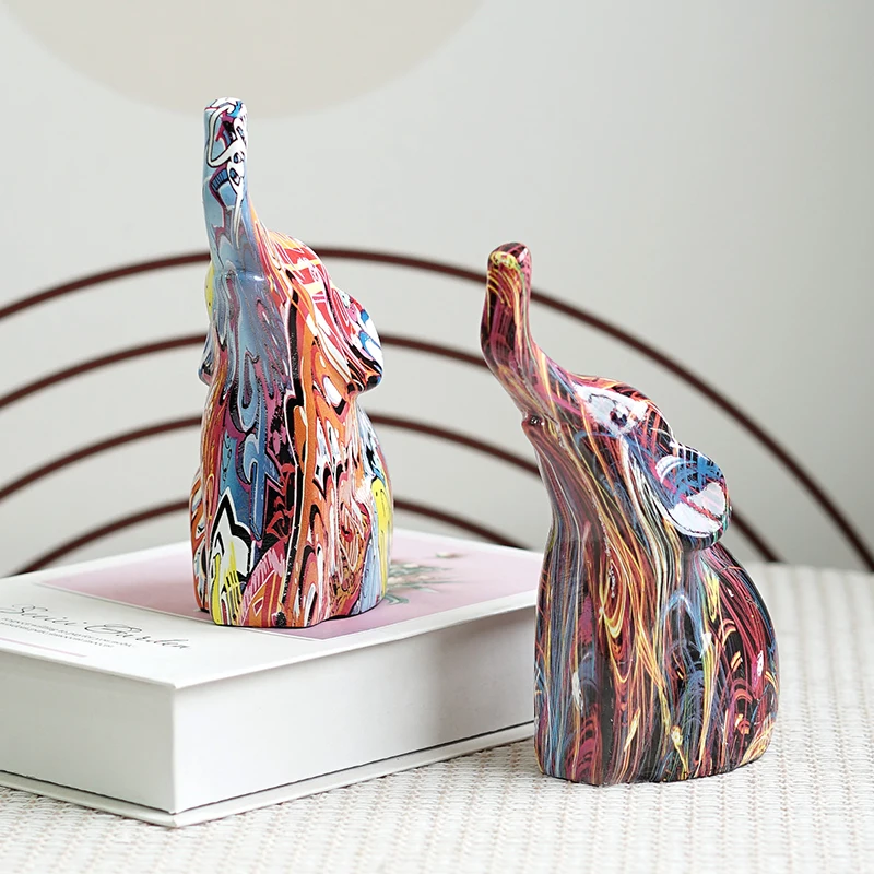 Resin Mini Elephant Figurines – Abstract Graffiti Art Decor