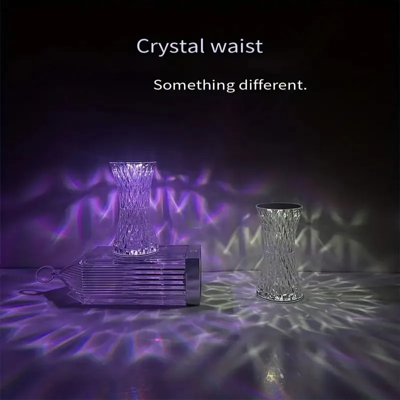 3/RGB Colors Crystal Diamond Table Lamp for Bedroom Changing Night Lights Small Waist Shape Rechargeable Bedside Study Lamp