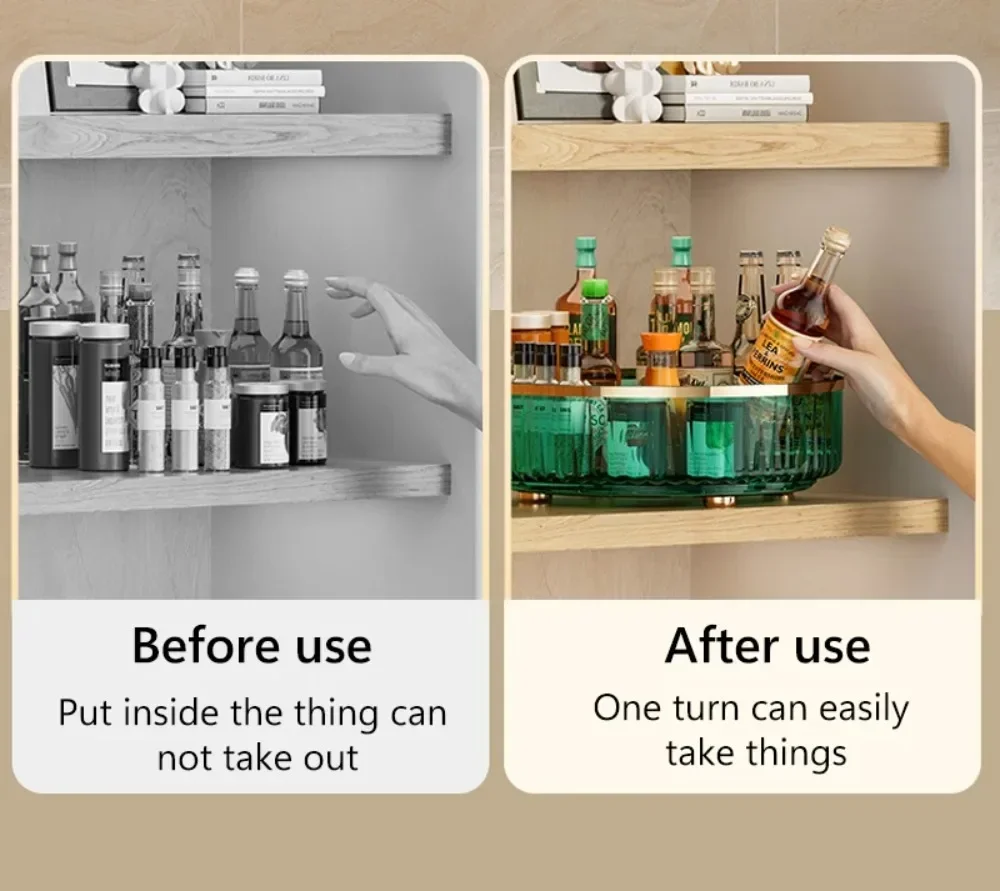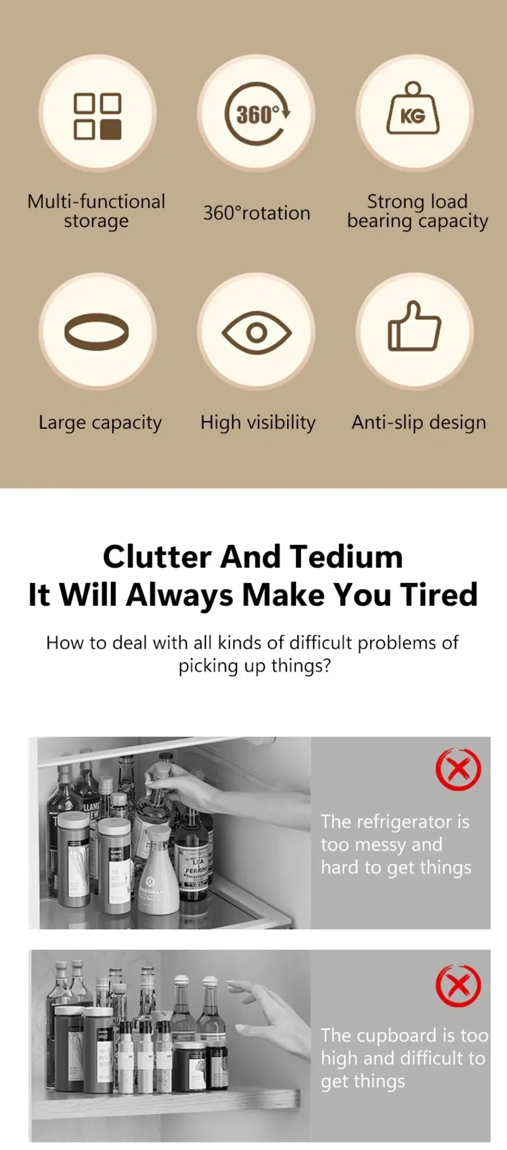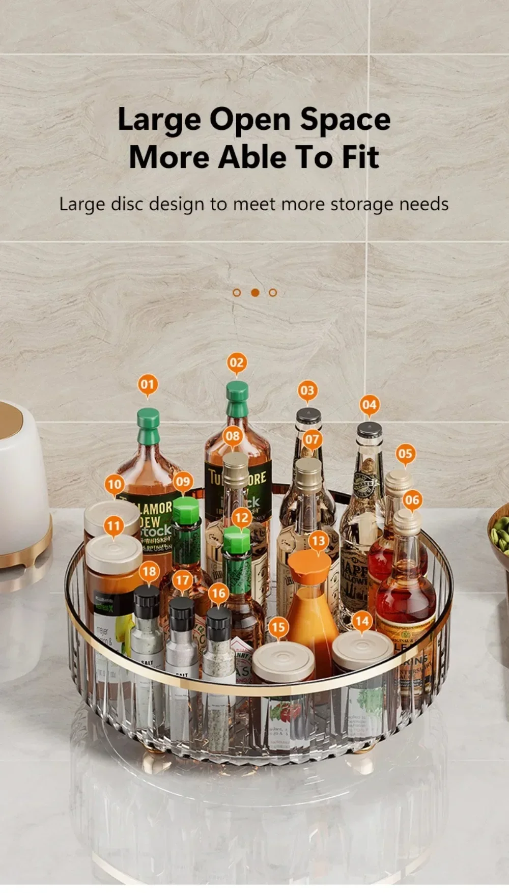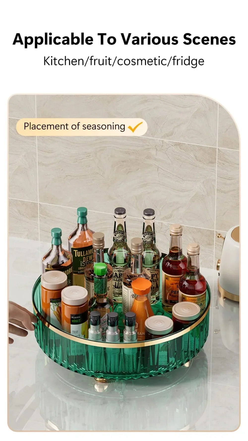 1. The 360° rotating tray is made of high-quality plastic material, thickened design, durable, transparent board crystal-like luster.