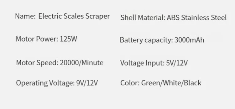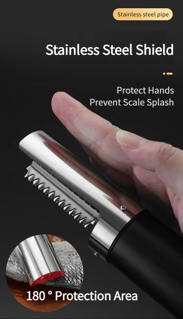 2: Our Electric Fish Scraper Can Quickly Scrape Fish. This Rechargeable Electric Fish Skin Scraper Has A Built-In 3000 Mah Rechargeable Lithium Battery And Supports Usb Charging For Wireless Use. Remove Fish Scales Easily, Quickly And Safely.