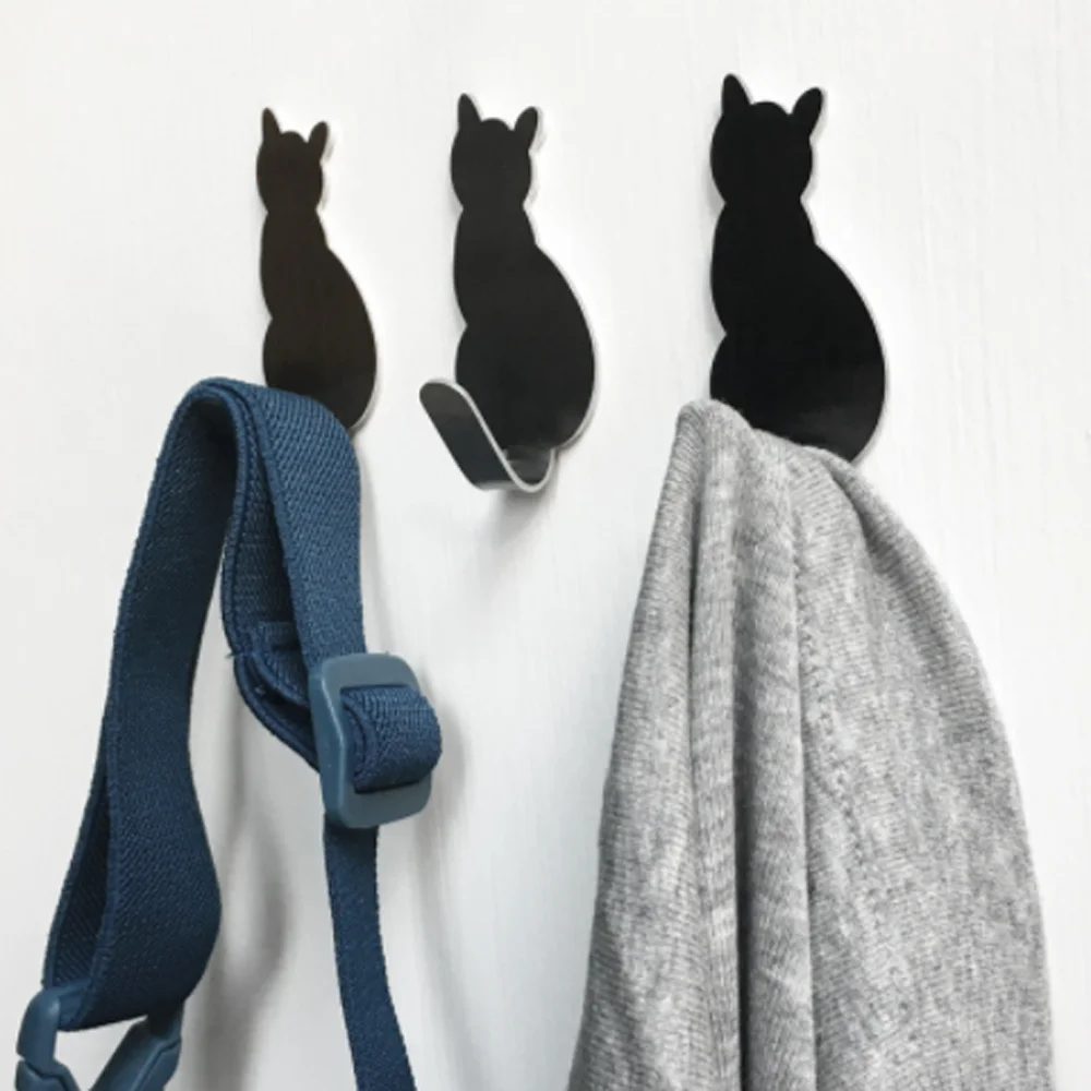 2pcs Self Adhesive Wall Hooks Cat Pattern Hangers For Bathroom Kitchen Stick on Wall Hanging Door Clothes Towel Racks Crochets