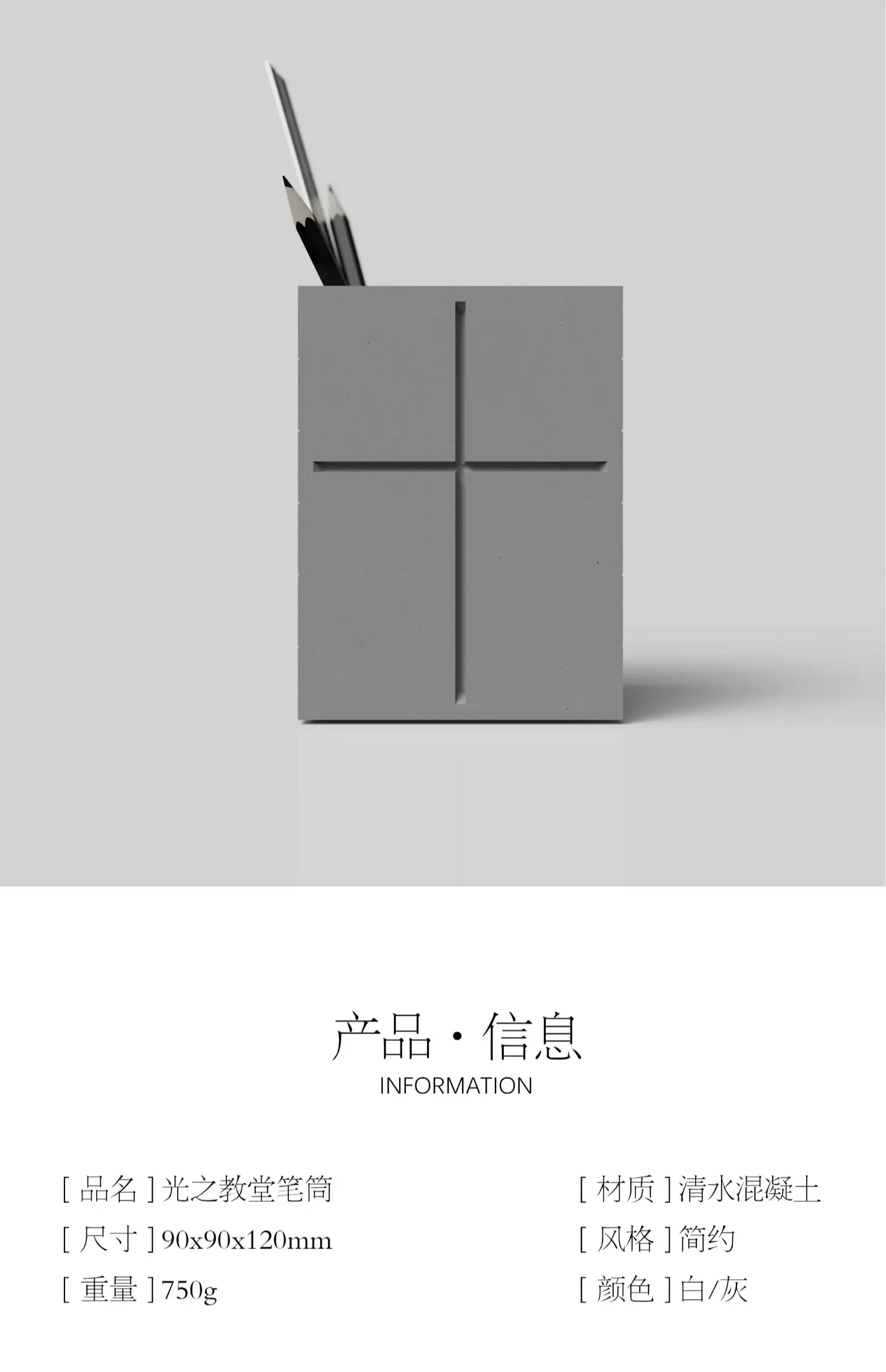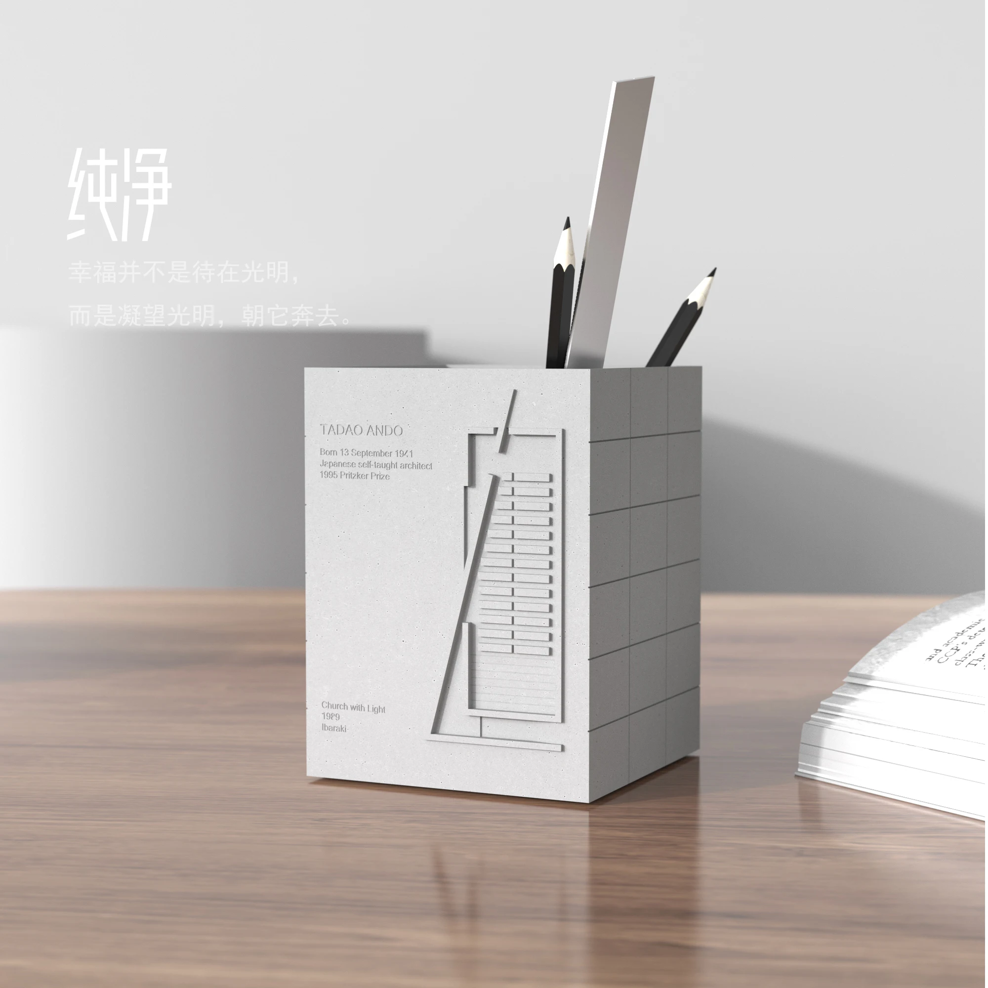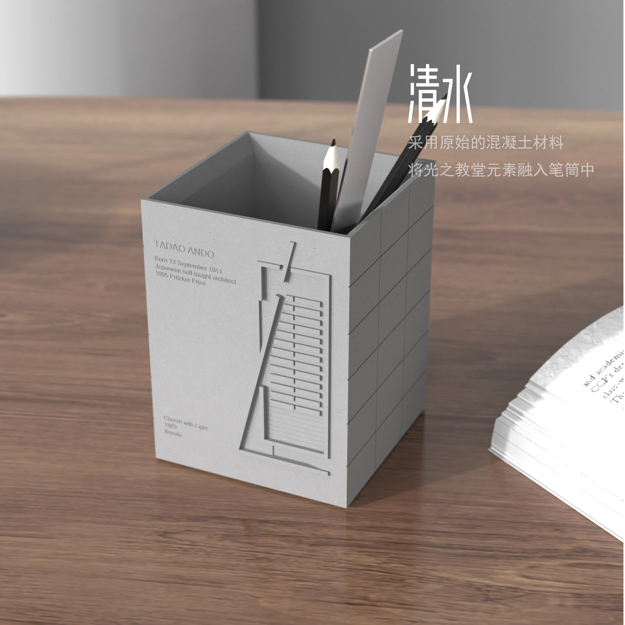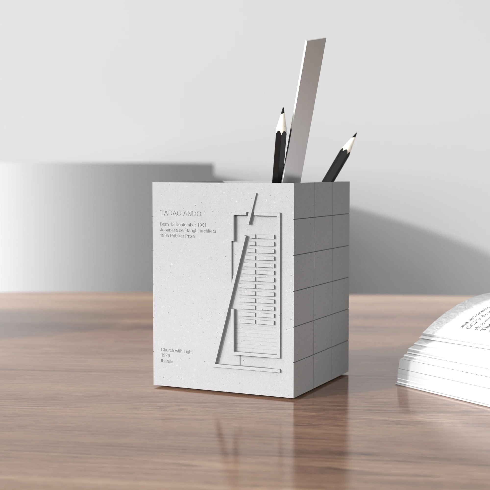 Serenity Station, Tadao Ando’s Church of Light Cement Pen Holder & Desk Decoration