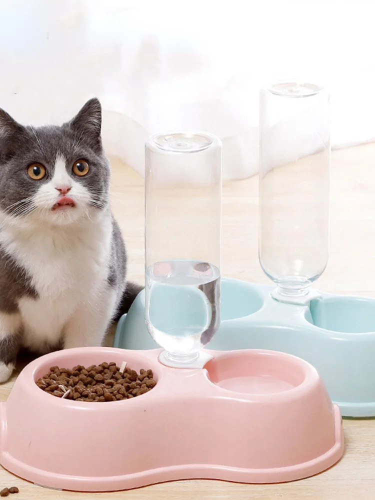 Simple Style Automatic Feeder Drinker, Double Bowl Pet Bowl with Solid Color Design, Ideal for Dogs and Cats