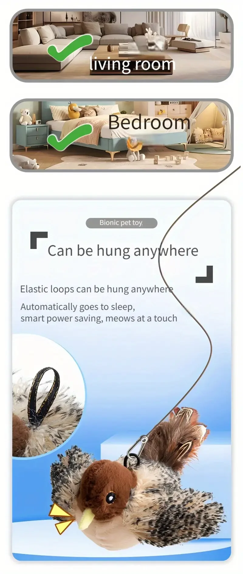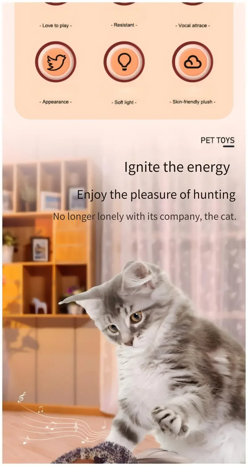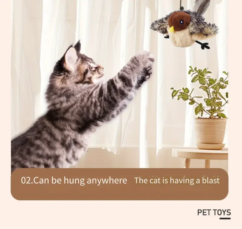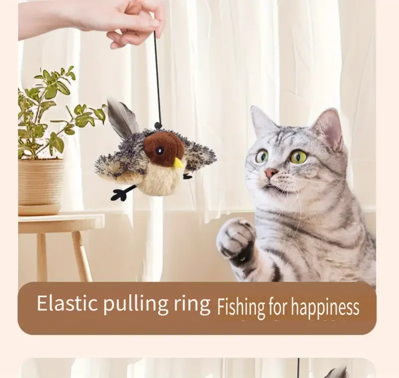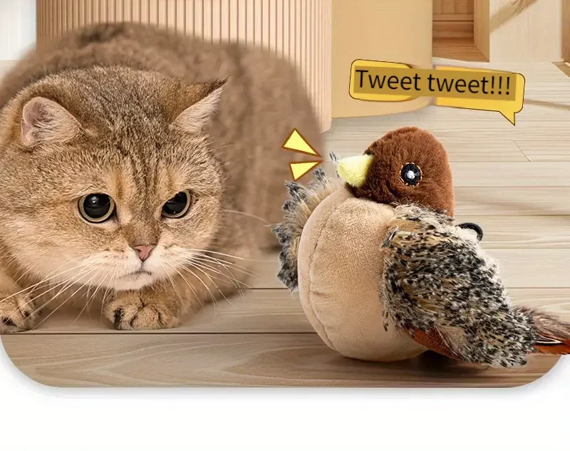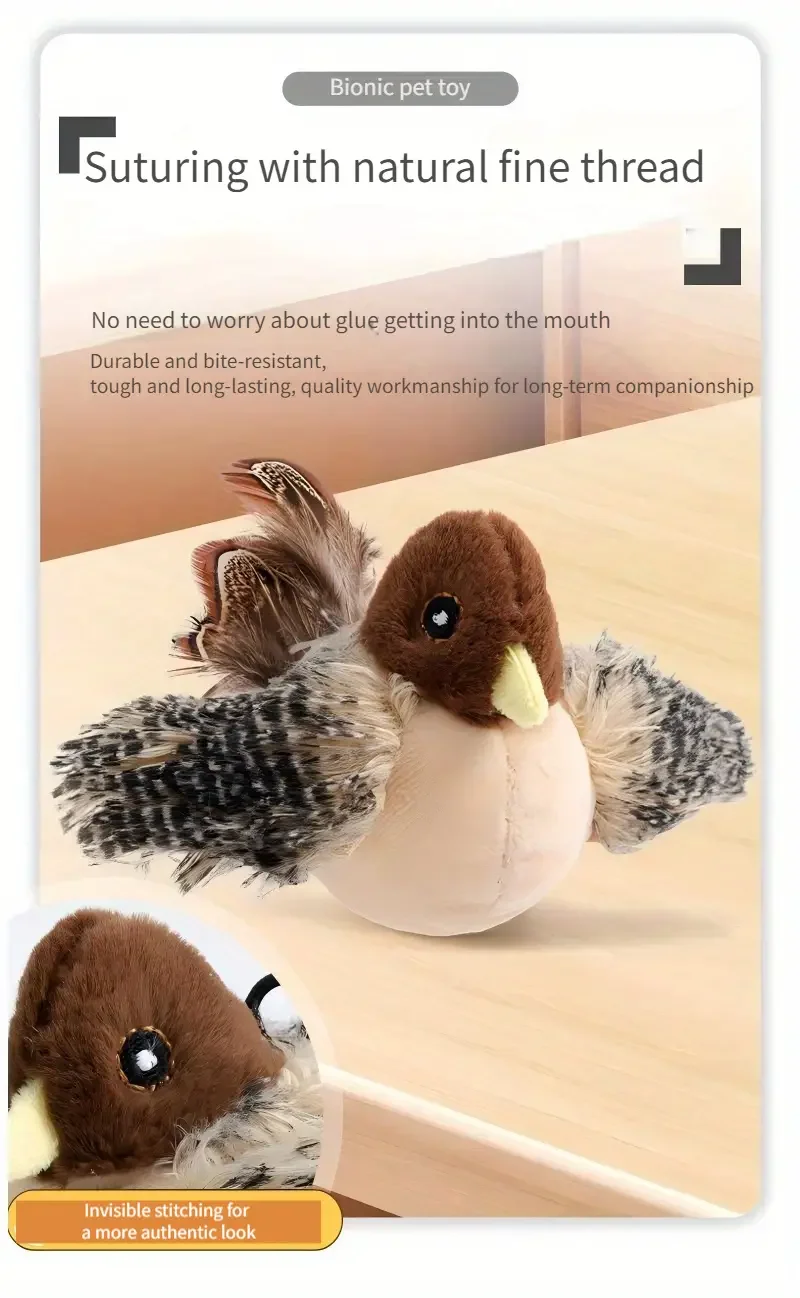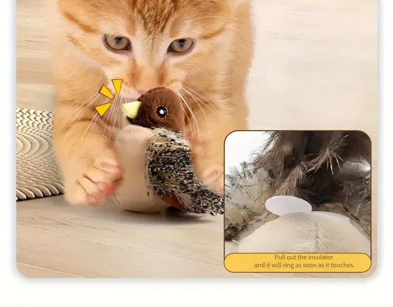 Simulated Bird, Cat Self Raising Sound Toy,Pet Toy, Included Cat Toy,Touch-Activated Catnip Toy – Soft Plush Material