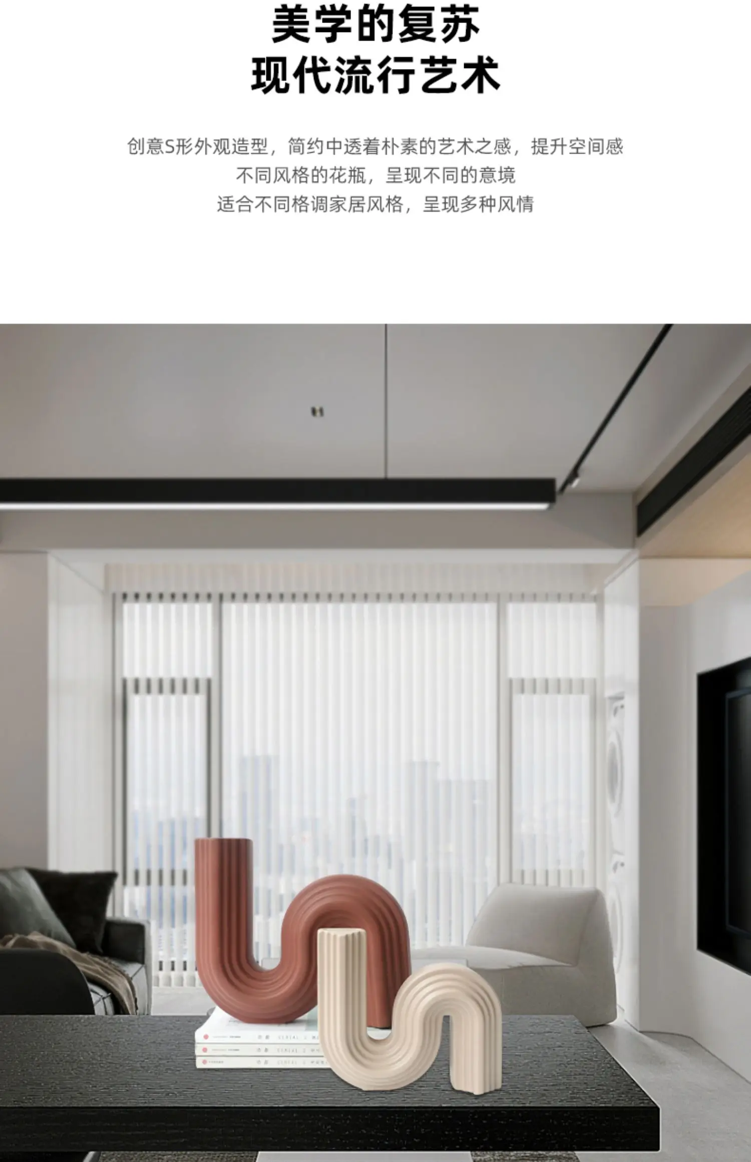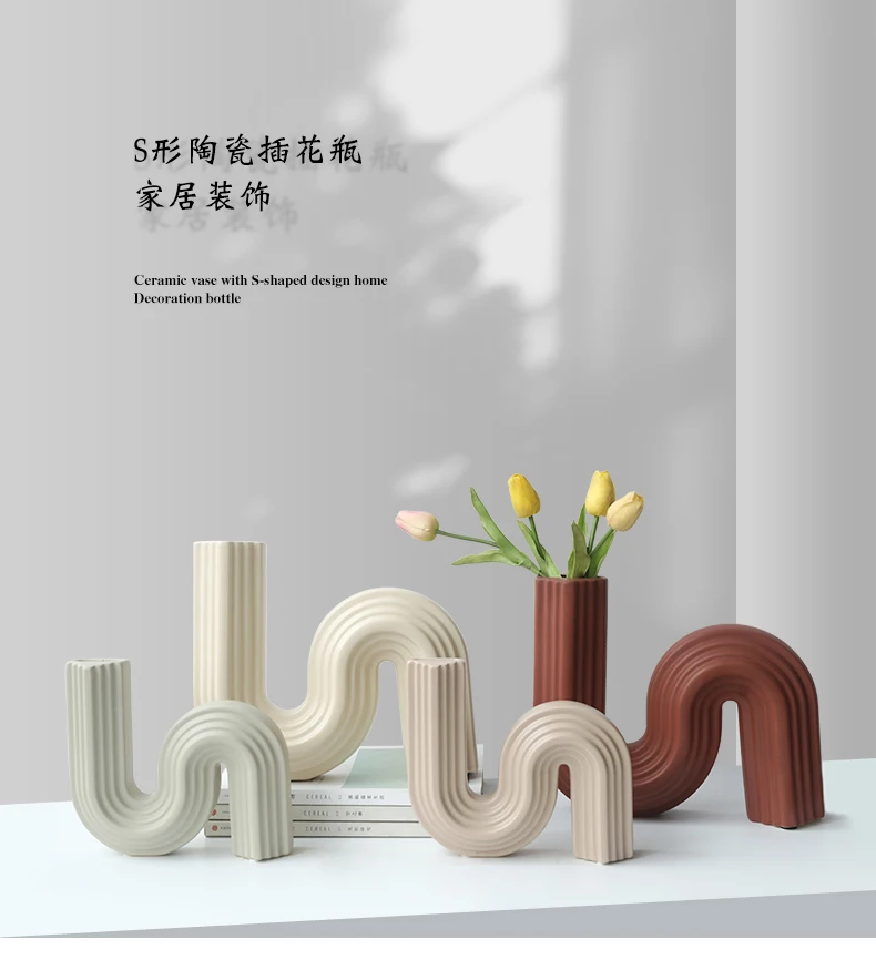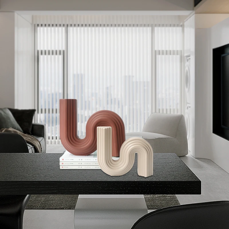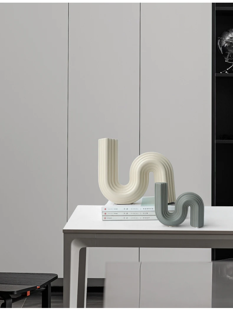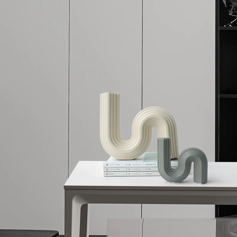 Sleek Elegance, Modern S-Shaped Abstract Art Vase, Minimalist Living Room and Model Room Decoration