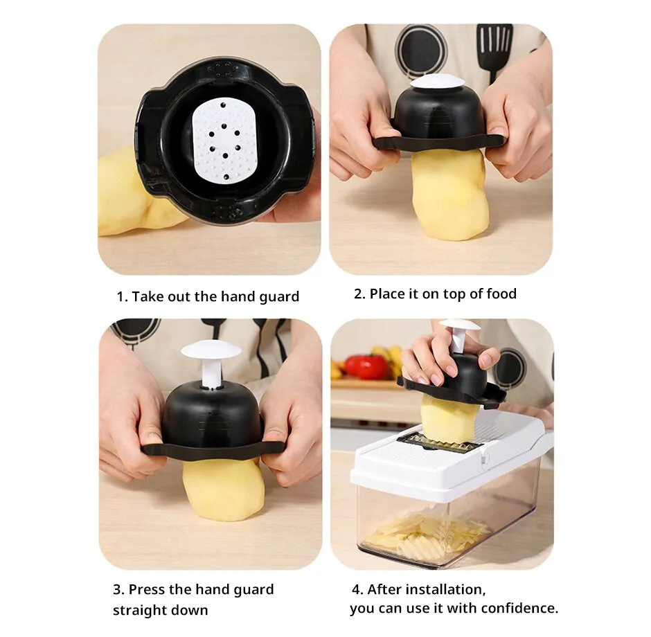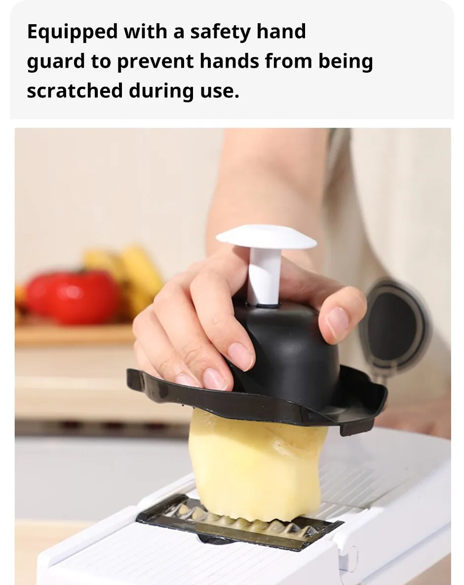 Easy to operate, very good vegetable cutting tool.Equipped with a safety hand guard to prevent hands from being scratched during use.