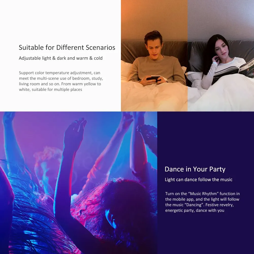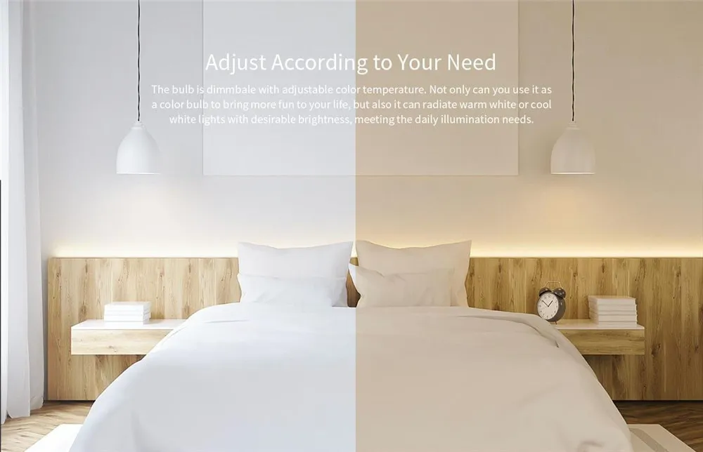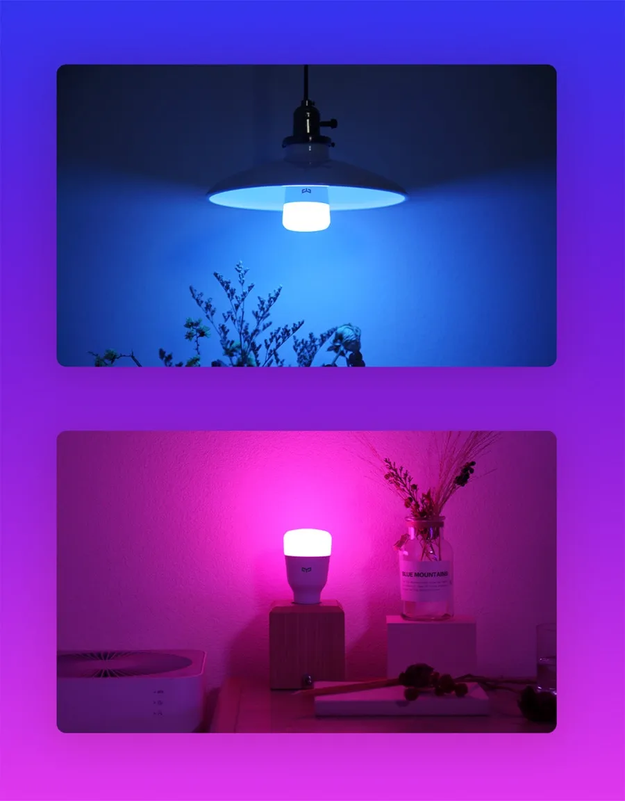 Yeelight 1SE smart LED bulb can adjust the brightness and color temperature. Cool white light with high brightness and color temperature can be used to provide a clear working environment. Use warm yellow light with low brightness and color temperature to create a comfortable sleeping environment.
