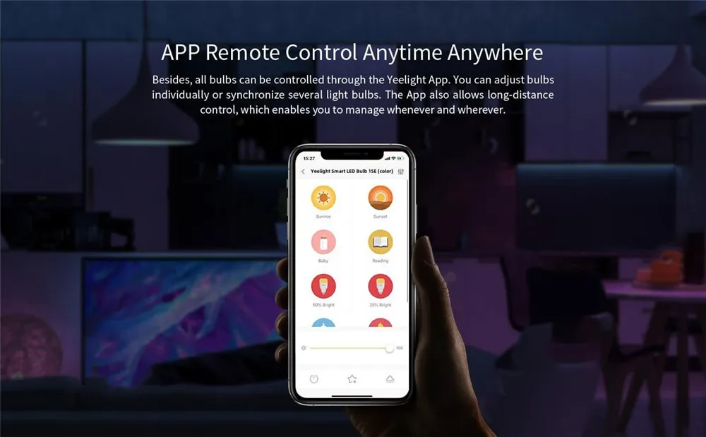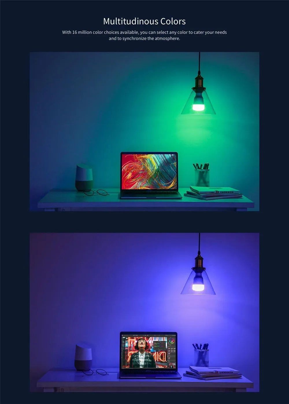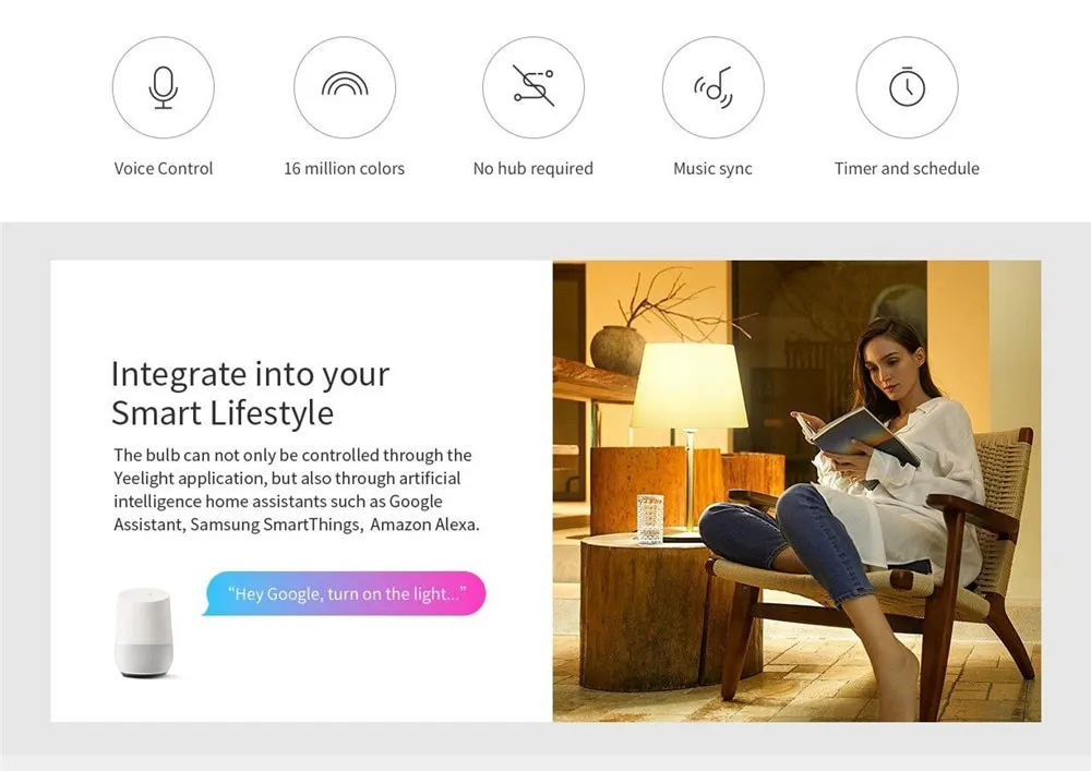 Yeelight 1SE smart LED bulb support voice control, which saves you the trouble of getting up to turn on / off lights. Support Google Assistant, Samsung SmartThings, Amazon Alexa.