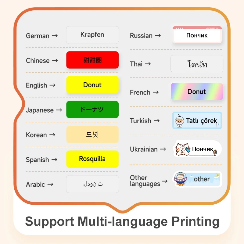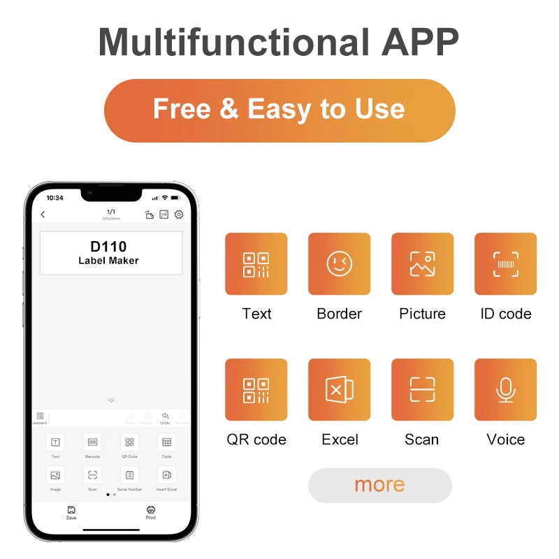 It supports printing various texts, numbers, graphics, symbols, logos, barcodes, QR codes Label, etc.