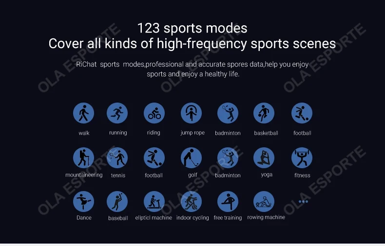 Custom wallpaper, Bluetooth call, music control, social APP message reminder, incoming call reminder, SMS reminder, multi exercise, alarm clock reminder, sedentary reminder, search for mobile phone, music playback, stopwatch, step counting, distance, calories, sleep monitoring, heart rate Monitoring, blood pressure, blood oxygen, searching equipment, language switching, and raising your hand to brighten the screen.