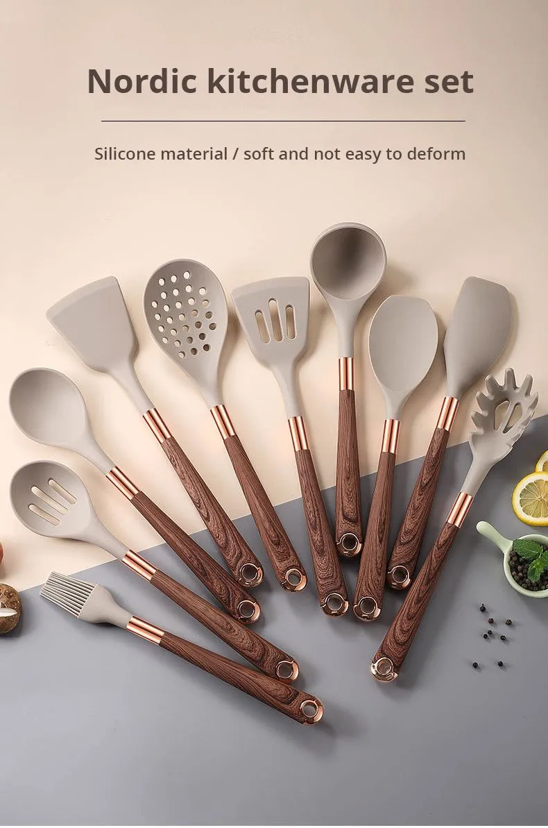 Soft Grip Kitchen: Silicone Kitchenware Set, Gentle on Pots, 5 Chic Color Options