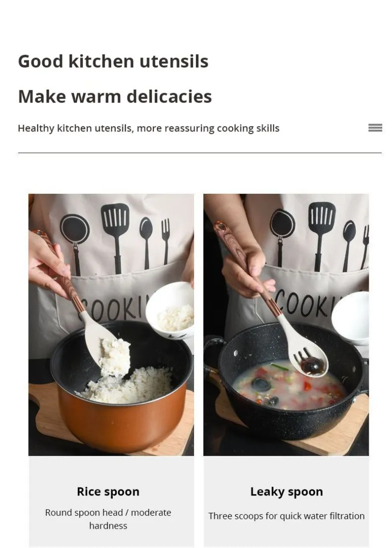 • Silicone Material :Made of silicone material, this kitchenware set is safe to use and won’t hurt your pot.