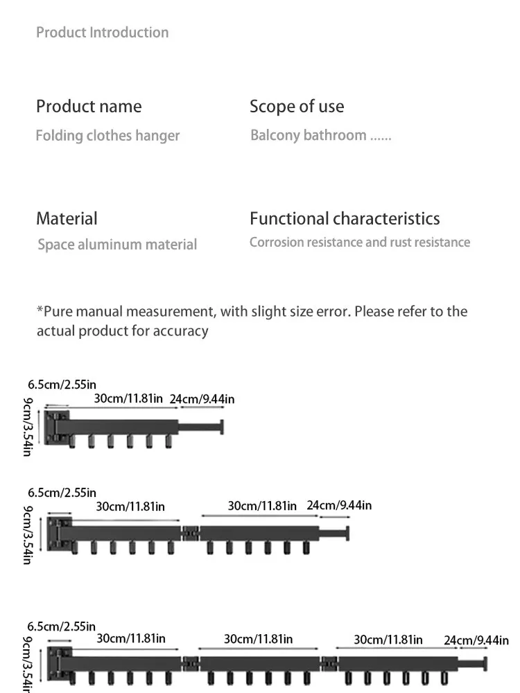 1, Rust-proof and durable material: this wall-mounted coat rack is made of space aluminum with multi-layer paint on the surface.