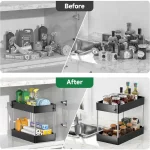 • Double Layers for Maximum Storage :With two layers, this under sink storage organizer provides ample space to store all your kitchen essentials.