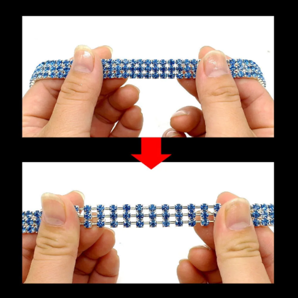 3 Rows Mixed Color Stretch Rhinestone Pet Collar Cat and Dog Jewelry Diamond Inlaid Pet Bone Dog Collar Accessories with Elastic