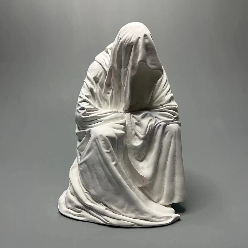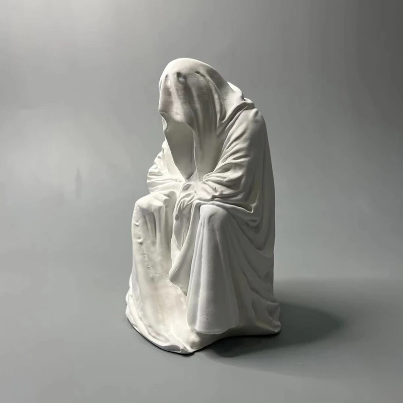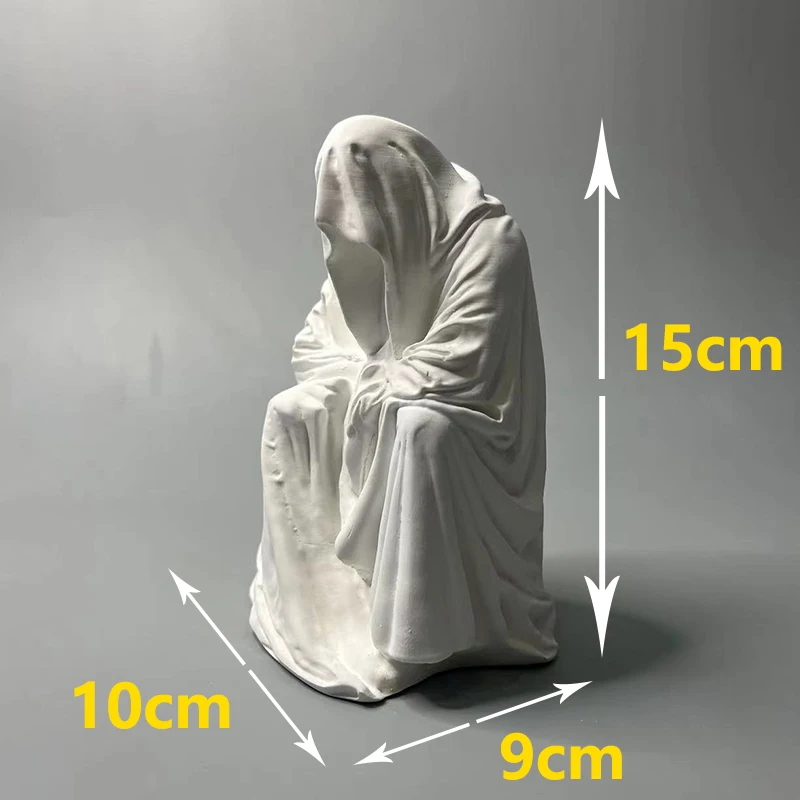 Spectral Sorcery, Ghost Wizard Plaster Sculpture, Unique Desktop Ornament and Retro Niche Party Gift