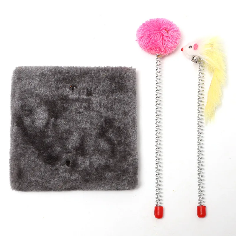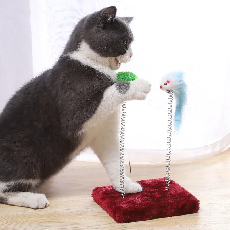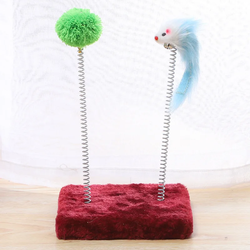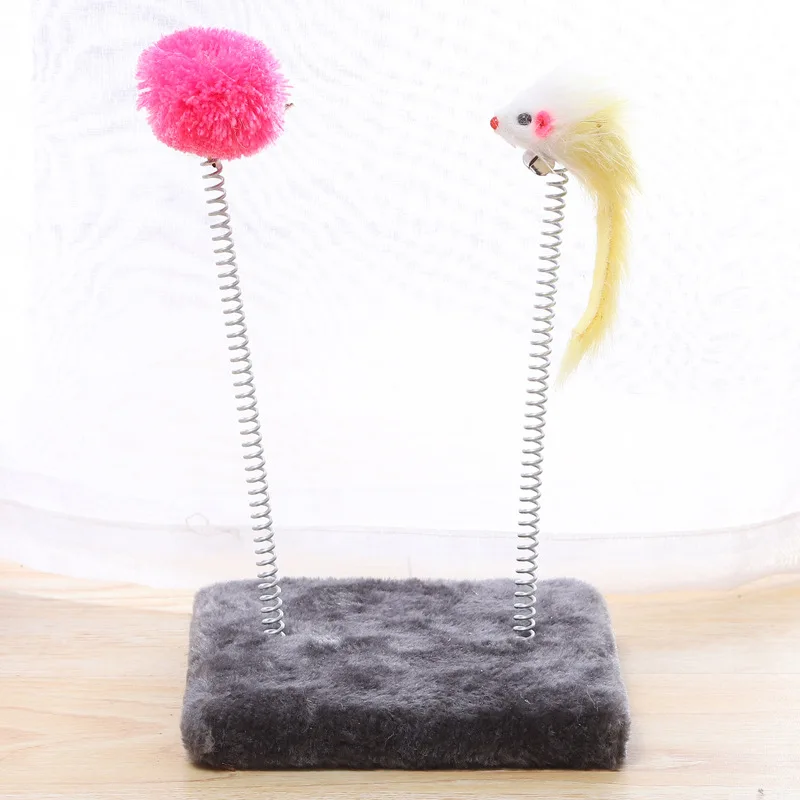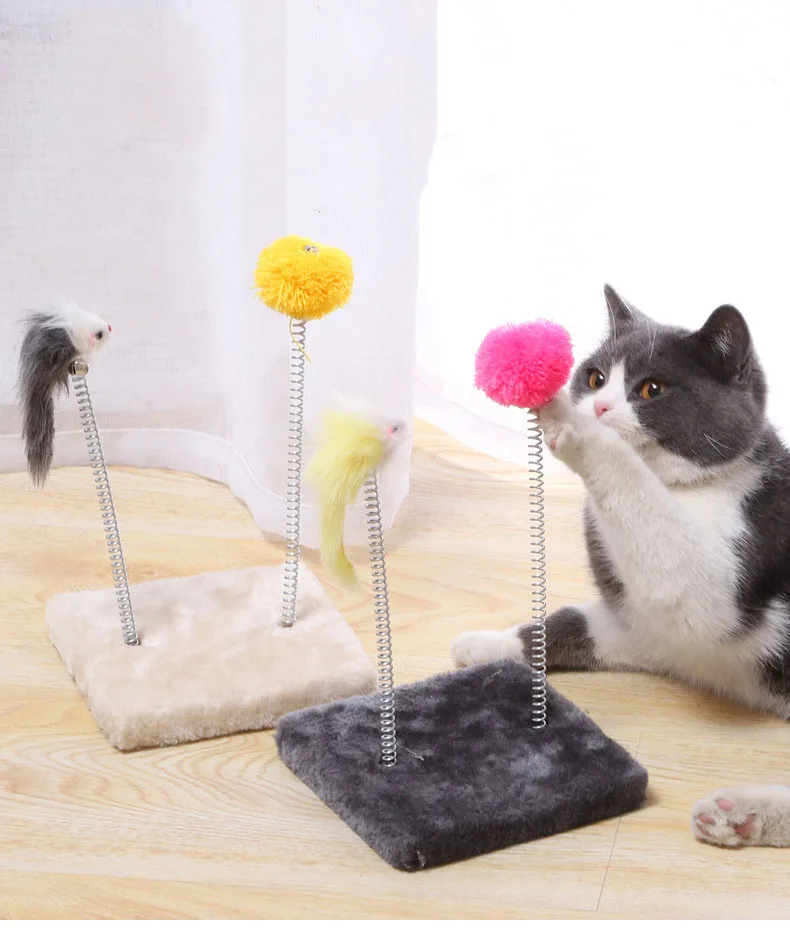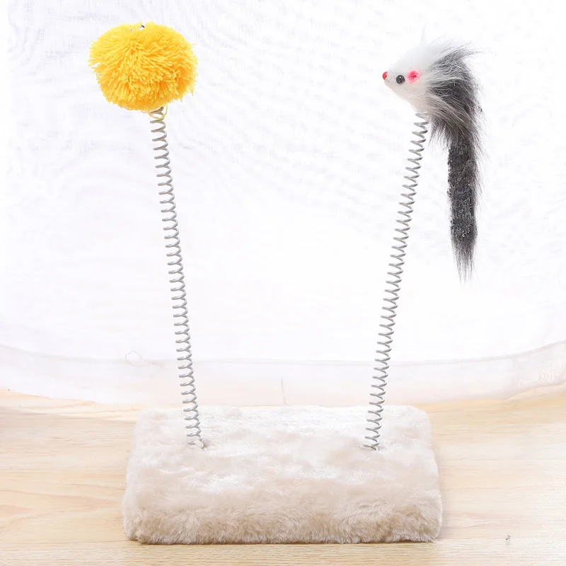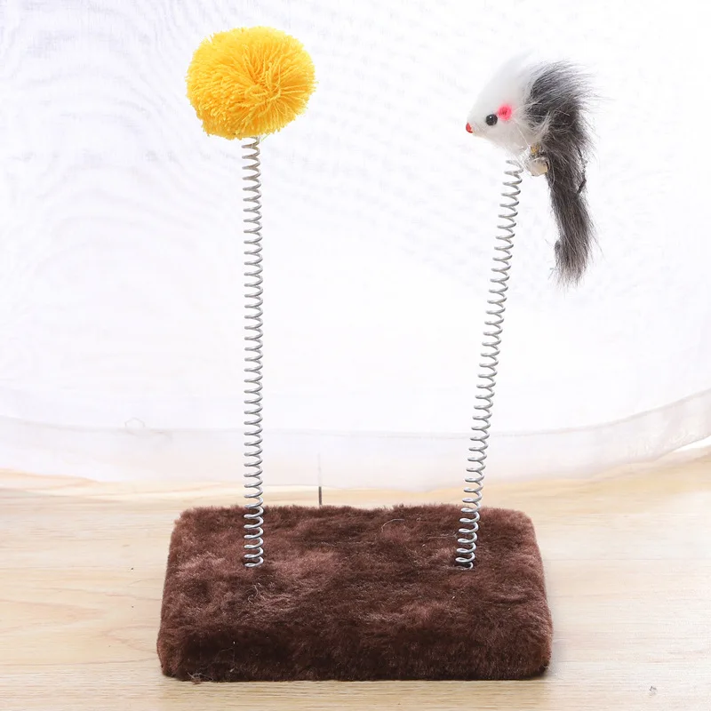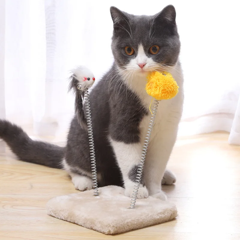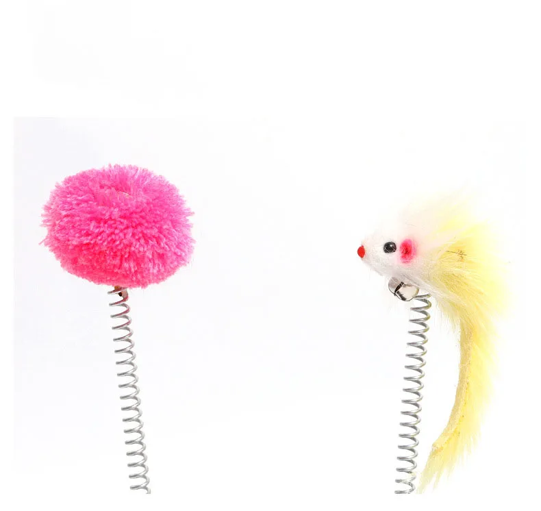 Springy Cartoon Mouse Cat Toy, Interactive Fun with Feather Rod & Mini Bell Sucker