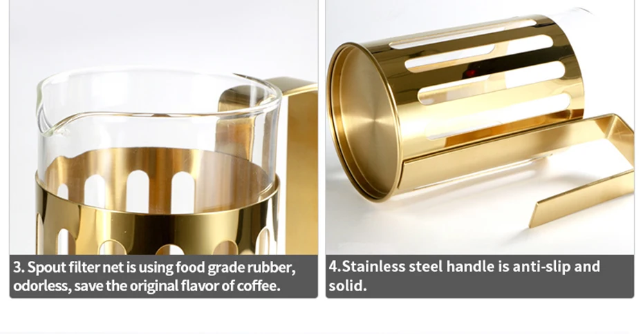 2.French press pot, simple and fast. Braised steamed extraction, which doesn’t filter the fat out of the coffee. So that the taste is more rich than the grease filtered out coffee.