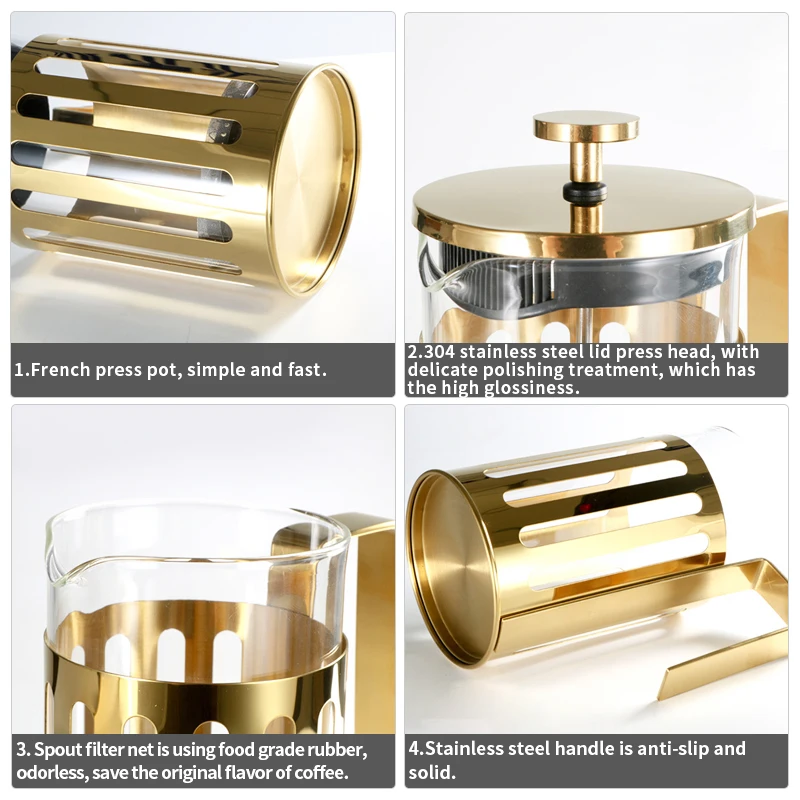 3.This French press cafetiere makes 8 espresso cups or 4 good mugs of coffee in just 5 minutes. Other than coffee, our large french press allows you to extract & brew any loose leaf tea, coffee, juice, milk foam, hot chocolate and so on anytime and anywhere. Such as camping, hiking, office, home etc.