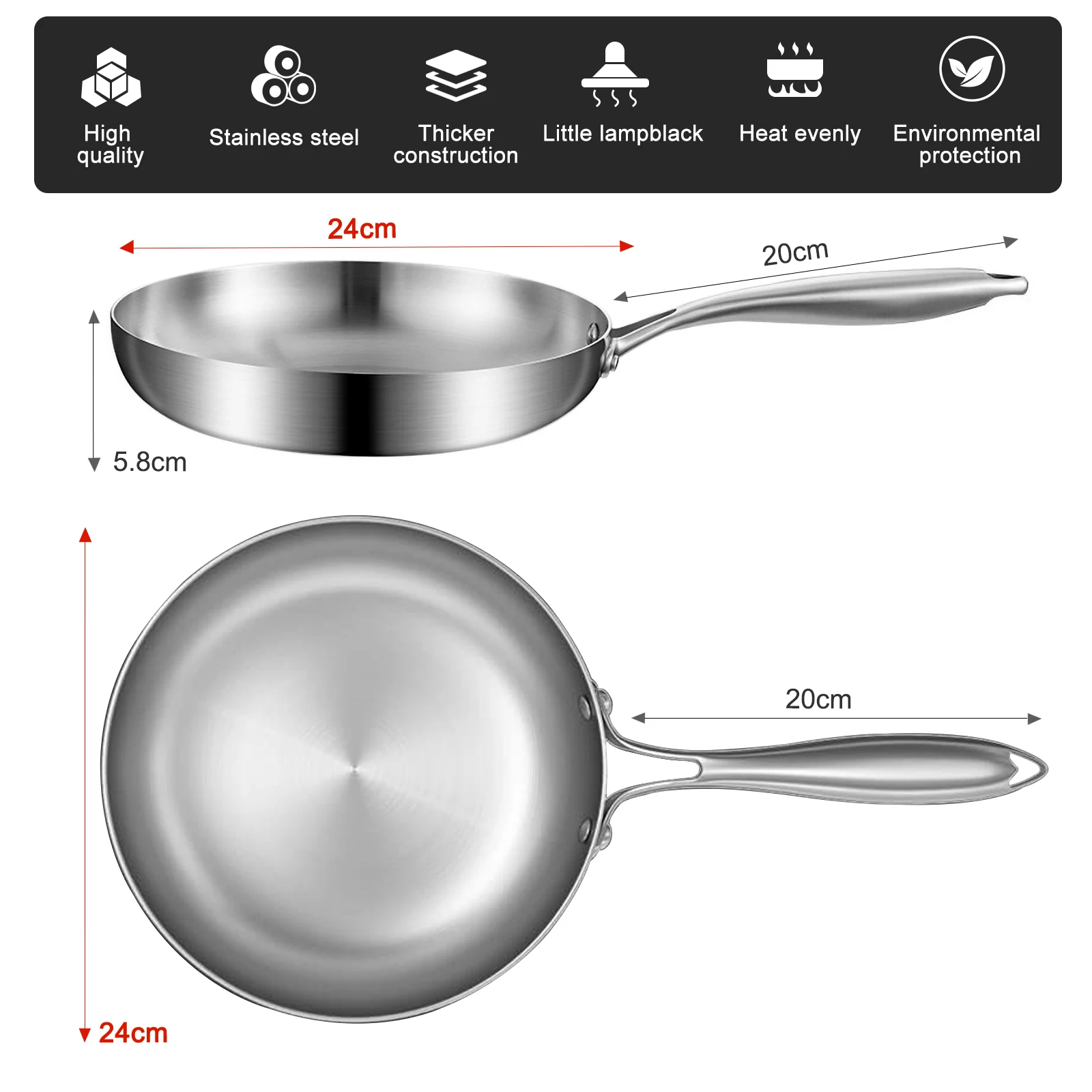 Stainless Steel Frying Pan Skillet for Induction Cooking