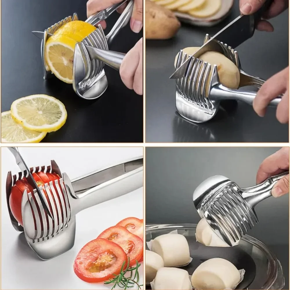 Stainless Steel Kitchen Handheld Orange Lemon Slicer Tomato Cutting Clip Fruit Slicer Onion Slicer KitchenItem Cutter Accessorie