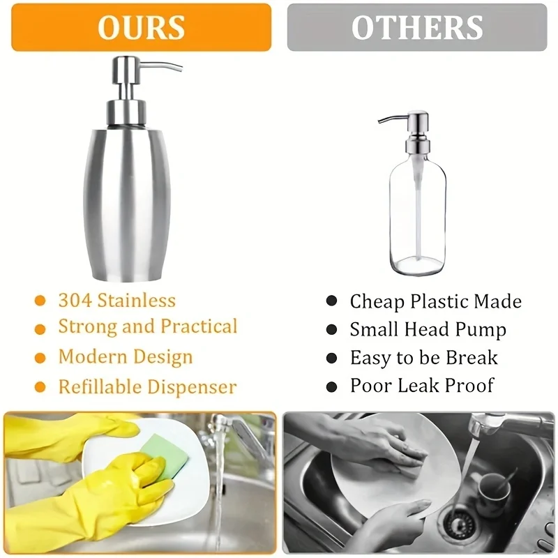 Stainless Steel Liquid Soap Dispenser for Kitchen and Bathroom