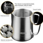 【MULTIPLE FUNCTION 】Our milk frothing pitcher can help you froth or steam milk for lattes; serve milk or cream. Perfect for water, juices, batter mixes, smoothies, and other pour-able item whether hot or cold. This pitcher gives you ultimate control of how much milk or cream each cup of coffee needs, Barista-grade pitcher you MUST have hidden in your kitchen.