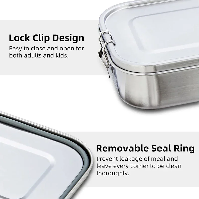 [Design] Movable and detachable partition design, the partition size can be adjusted according to the food, and the partition design will not smell. Built-in silicone sealing ring and leak seal. Double lock design, safe for children, easy to open without hurting hands.