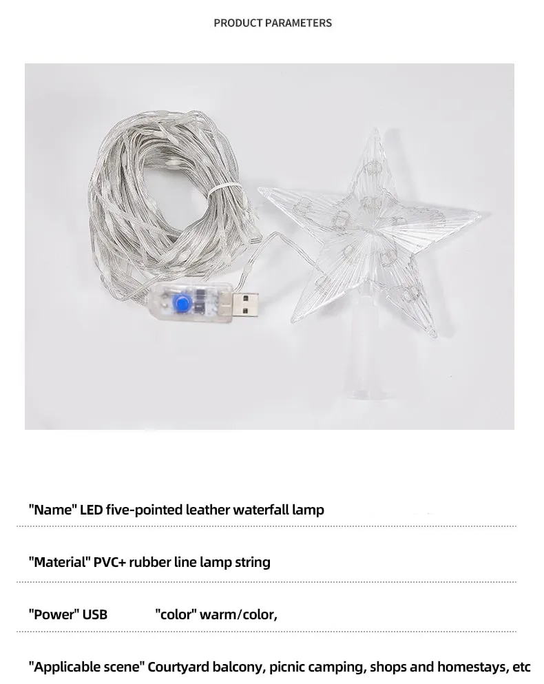 Starry Cascade: 2M Five-Pointed Star Lamp String – Transform Your Outdoor Spaces
