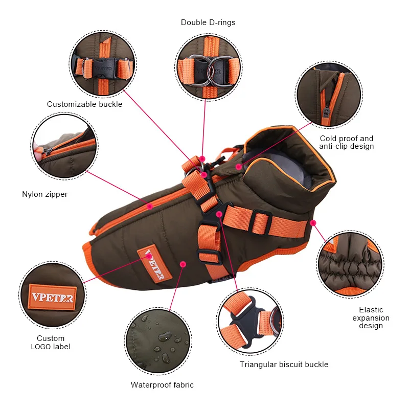 Stay Cozy and Secure, Waterproof Winter Jacket with Harness for Your Petite Pup