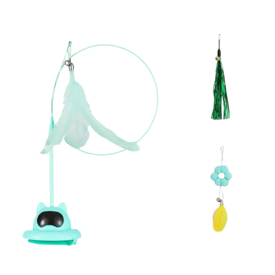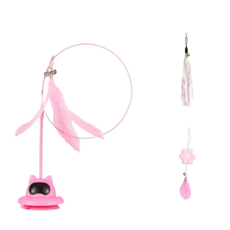 SuctionPaws Teaser Set, 4-Piece Cat Toy Kit with Suction Cup, Steel Wire Teaser Stick for Interactive Play