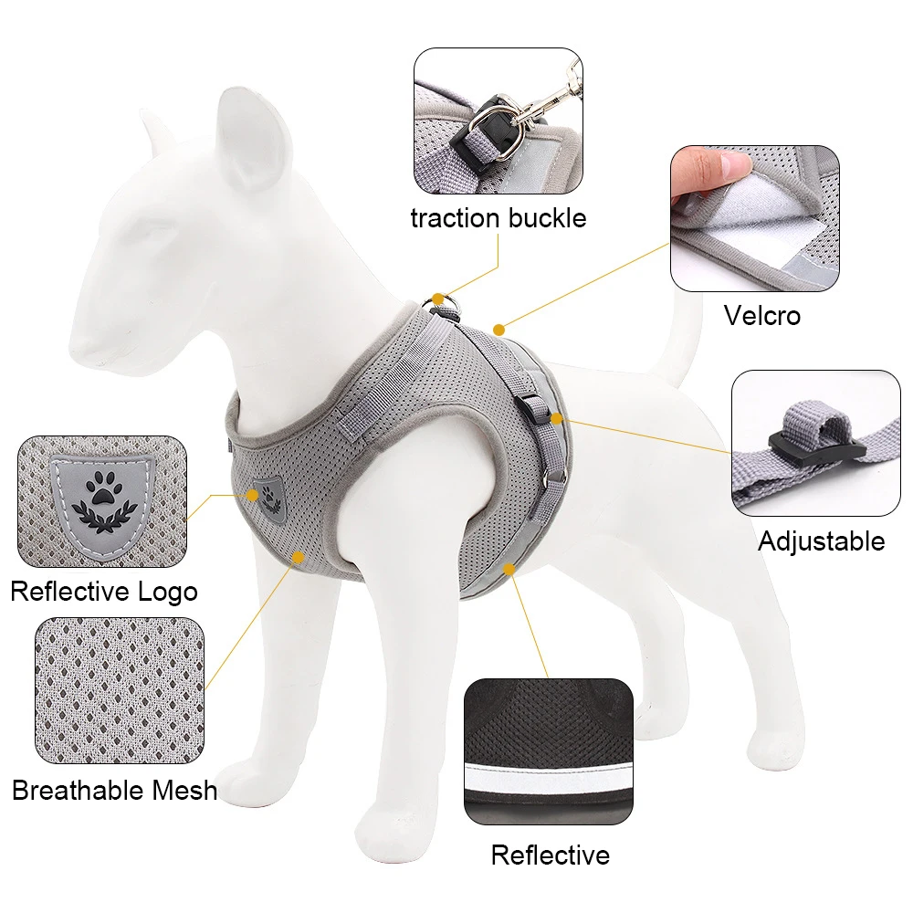 • Feature:Adjustable,Reflective,Breathable,No pull dog harness
