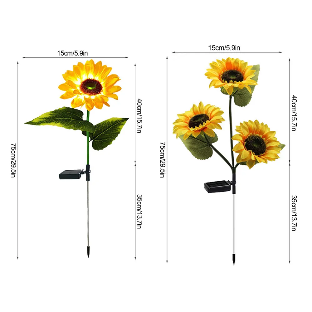 1/3 Head LED Solar Simulation Sunflower Lights Garden Yard Lawn Night Lights Landscape Lamp Home Decorative Flower Lights