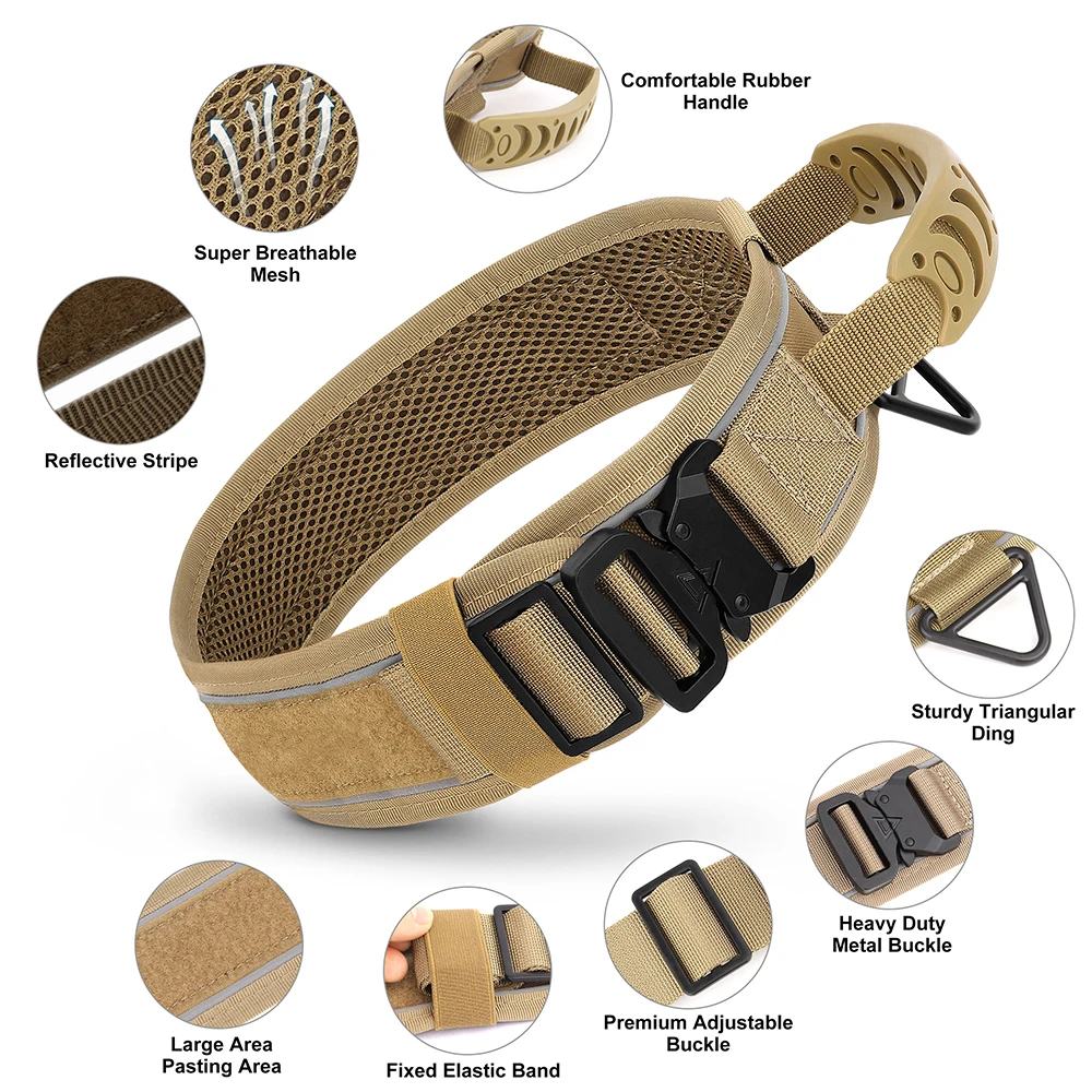 Nylon Durable Dog Collar Military Tactical Pet Training Collars Reflective Necklace With Handle Strong For Medium Large Dogs