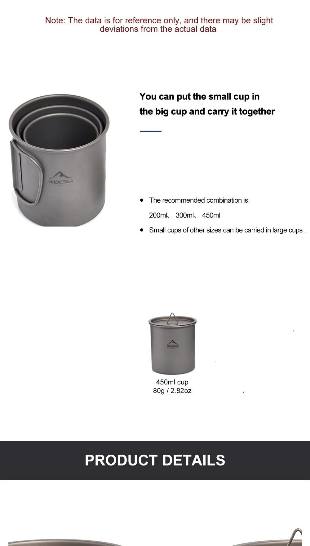 450ml titanium cup size: Φ8.1cm * 9cm