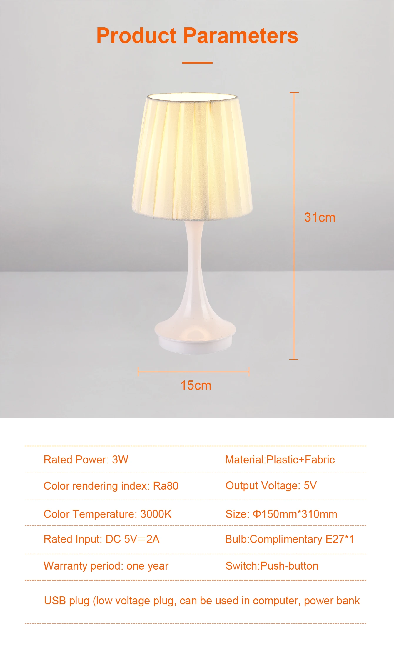 USB Minimalist Glow: Cloth-Covered Table Lamp for Bedroom Bedside and Dining Room Ambiance