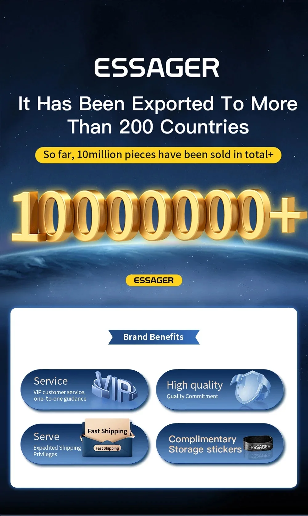 • Fast Charging Capability :Experience rapid charging with the ESSAGER USB Type C cable, designed for Huawei, Xiaomi, Samsung and other devices supporting 100W super charge. It’s the perfect solution for those who need speedy charging on the go.