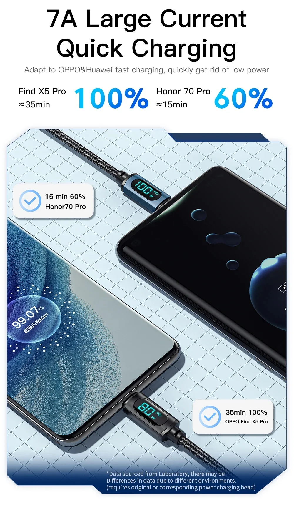 1. For Samsung Fast Charging 18W And Xiaomi Fast Charge 27W ,Part Of Xiaomi Series Mobile Phones Do Not Have An Open Fast Charging Protocol, This Data Cable Can Only Reach 27W Charging Power for Xiaomi (like 12 Pro,12 X,12,11,K50,K50 Pro,Notell,K40S,10.) , Not Support Mi Turbo Charge.