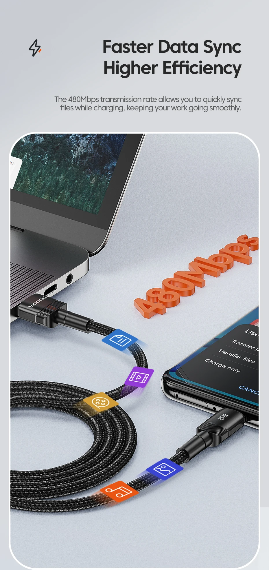 The 480Mbps transmission rate allows you to quickly sync files while charging, keeping your work going smoothly.