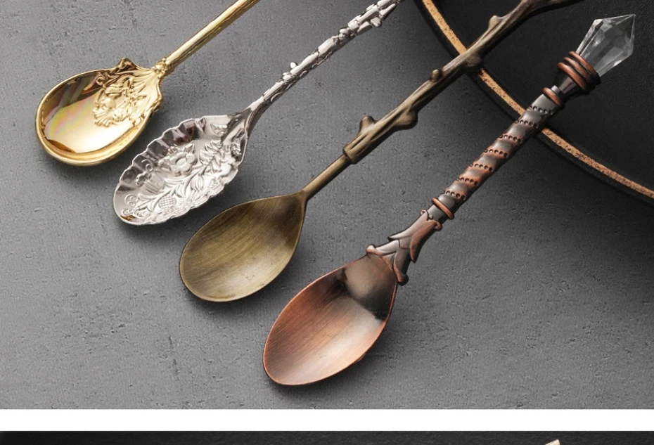4.【European Retro Style】The fruit spoon and fork set, with exquisite note flowers on the handle, unique, delicate, novel, beautiful and practical.