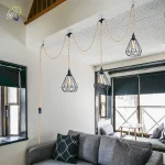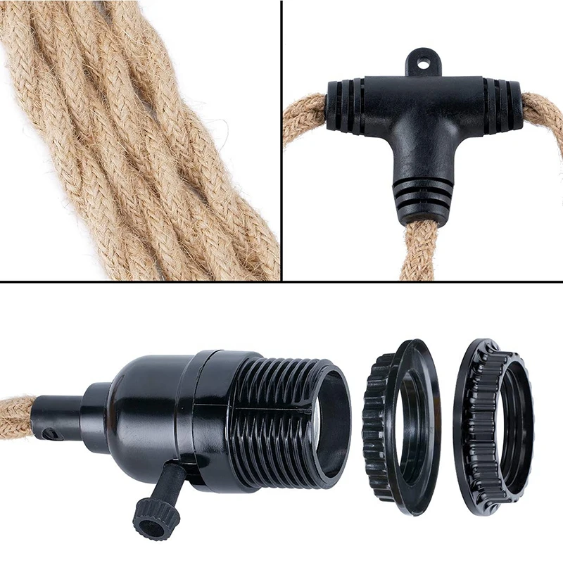 Vintage Industrial Charm, Loft Style Hemp Cord Chandelier with Switch, EU Plug, and E27 Bulb Holders, Illuminate with Character