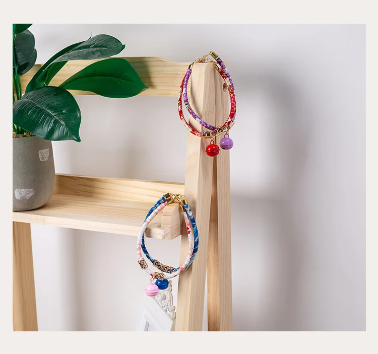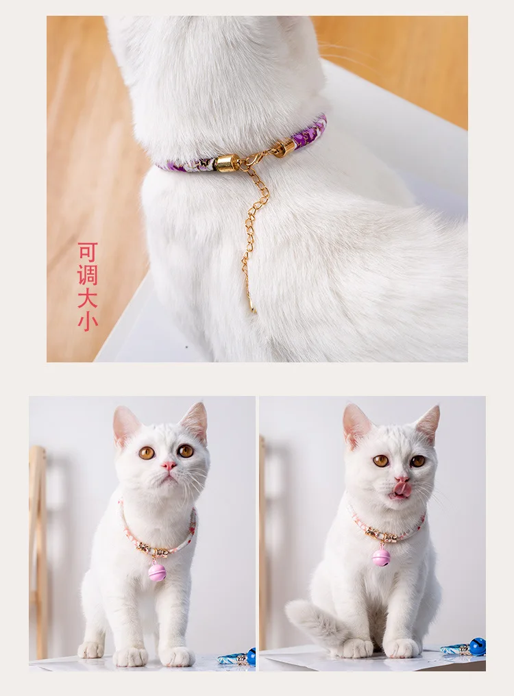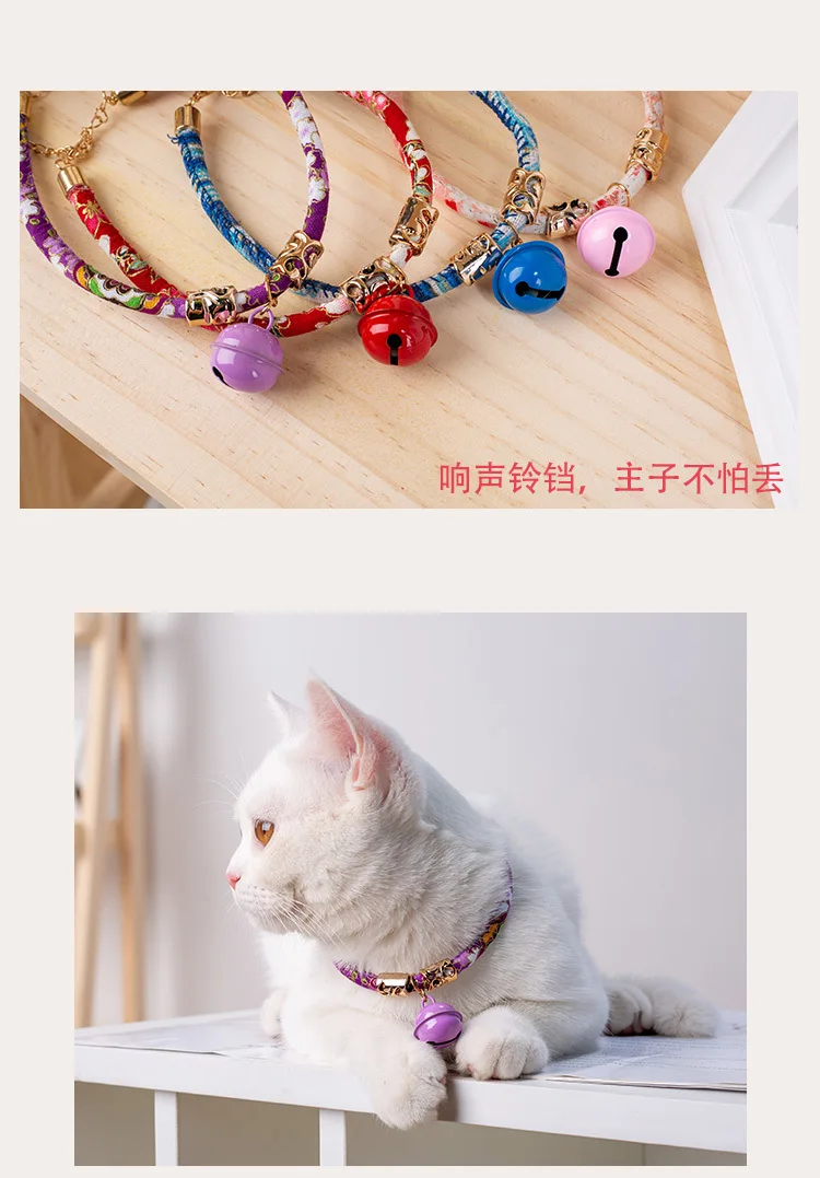 New cat bell collar cat vintage style dog rabbit kitten collar retractable Japanese style wind bell collar bohemian pet supplies