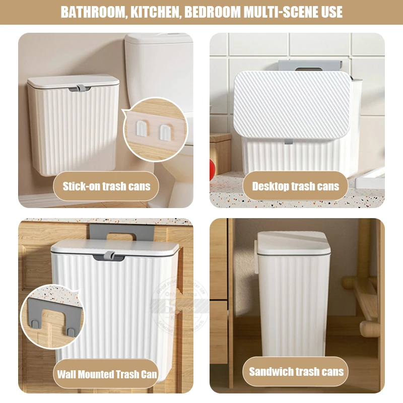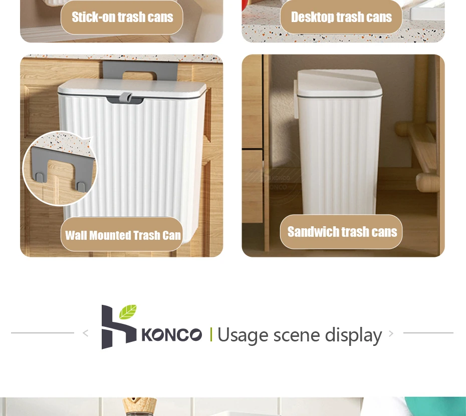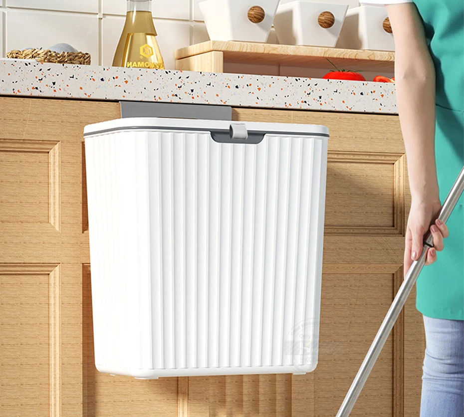 2.【Easy to Install】Hang on the cupboard door or hang on the wall with mount accessory included. Perfect fit for most cabinet doors, pantry doors, cupboard for kitchen/bathroom/Bedroom/Office/Under Sink etc. Space saving and environmentally friendly garbage can.