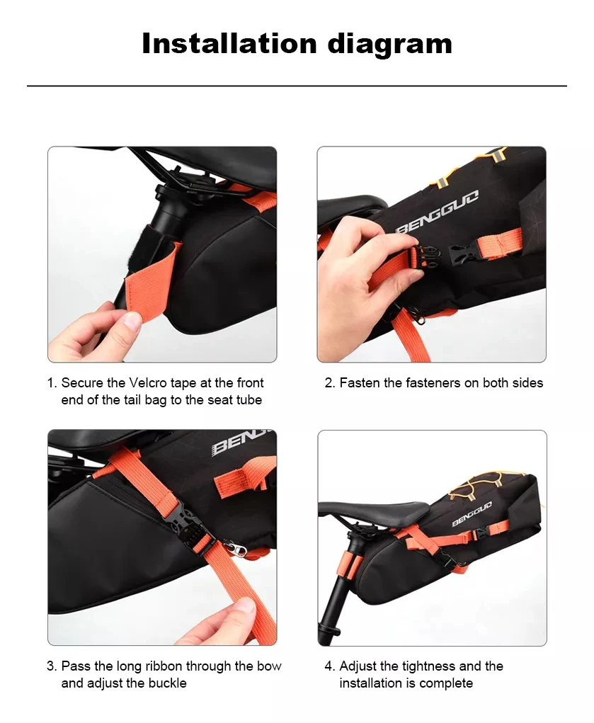 5. Sturdy design: The sturdy structural support design of the back pocket adds stability and shape, allowing it to be securely fixed to the bicycle saddle without loosening. Enjoy carefree driving when you know your suitcase is securely in place.