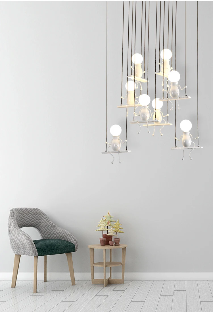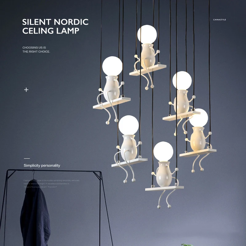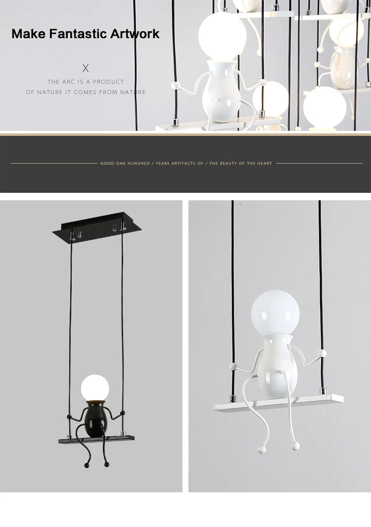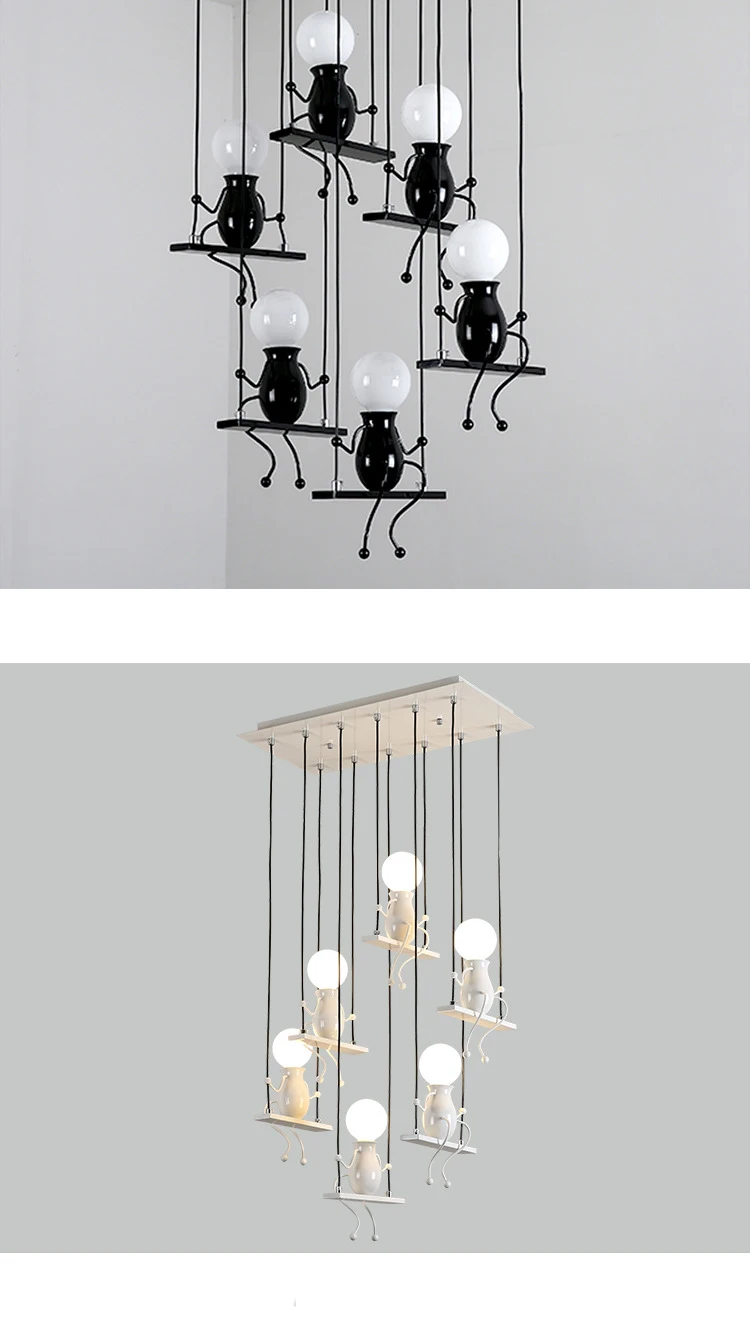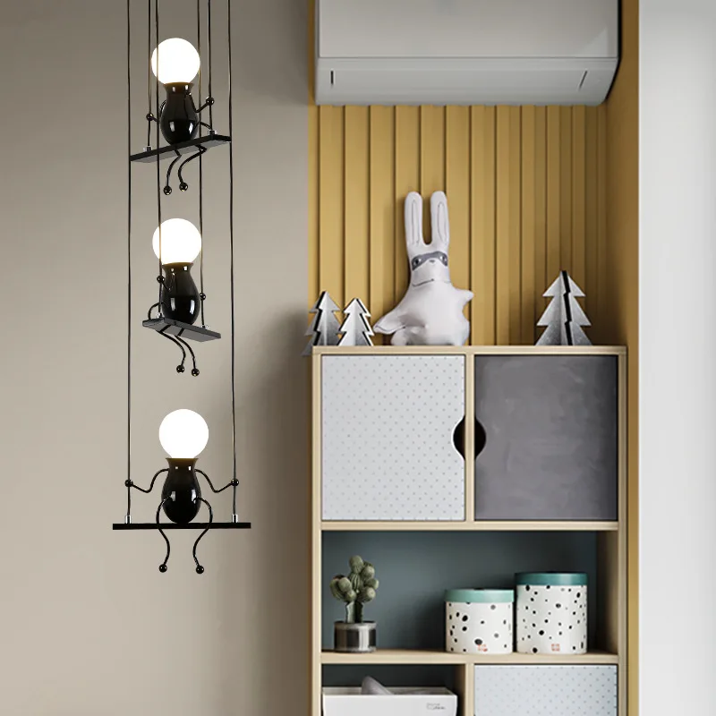 Creative Little Man Chandelier Iron People Climbing Chandeliers Children Room Hanging Led Lamp Pendant Lamps Art Decor Fixtures