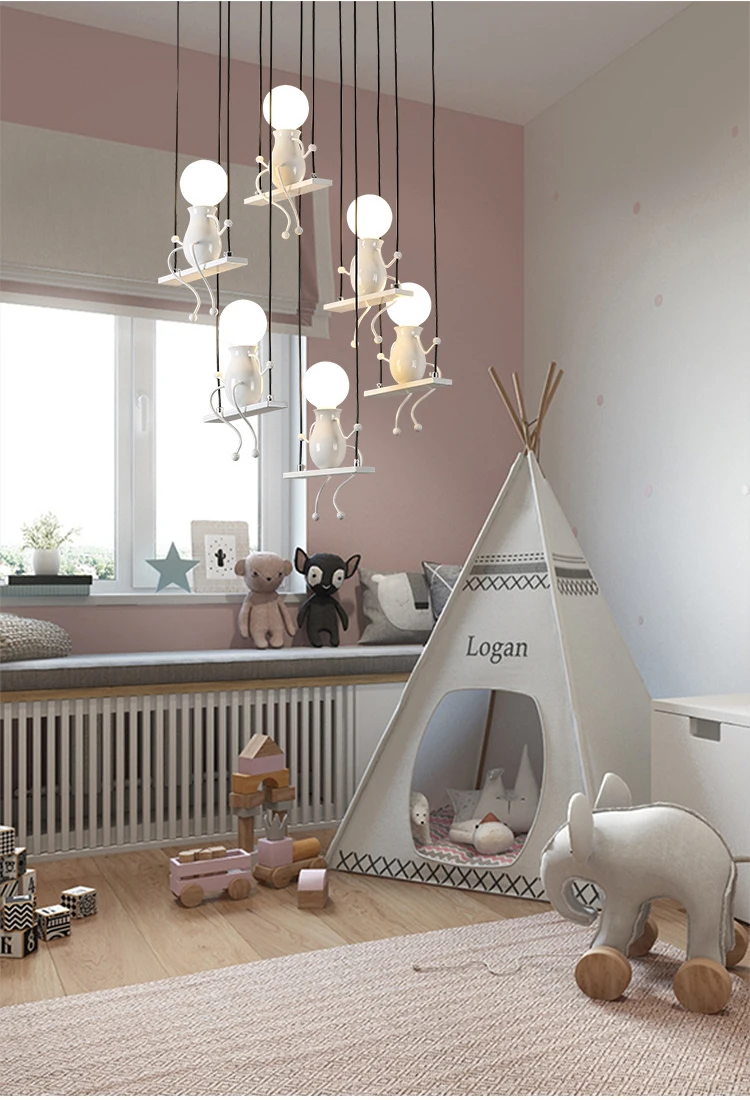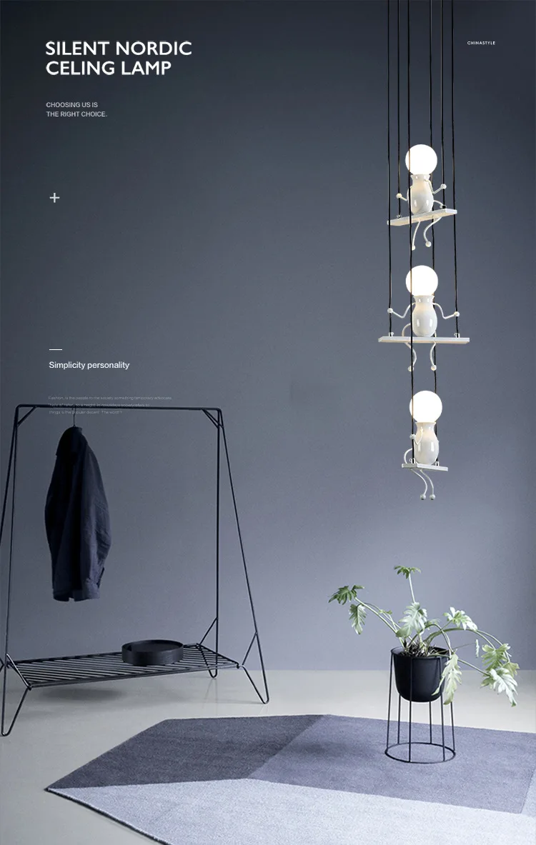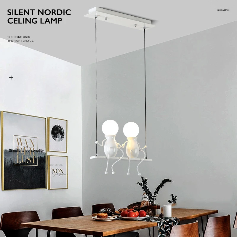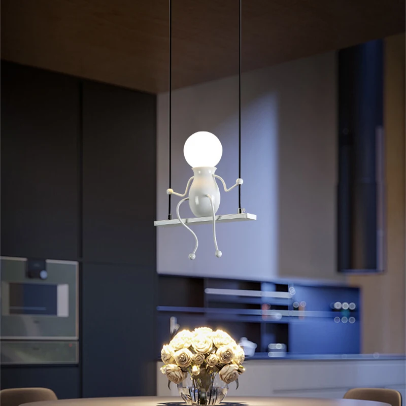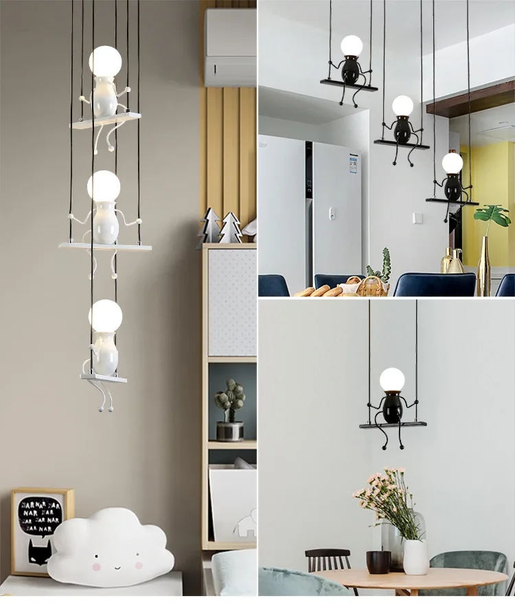 Creative Little Man Chandelier Iron People Climbing Chandeliers Children Room Hanging Led Lamp Pendant Lamps Art Decor Fixtures