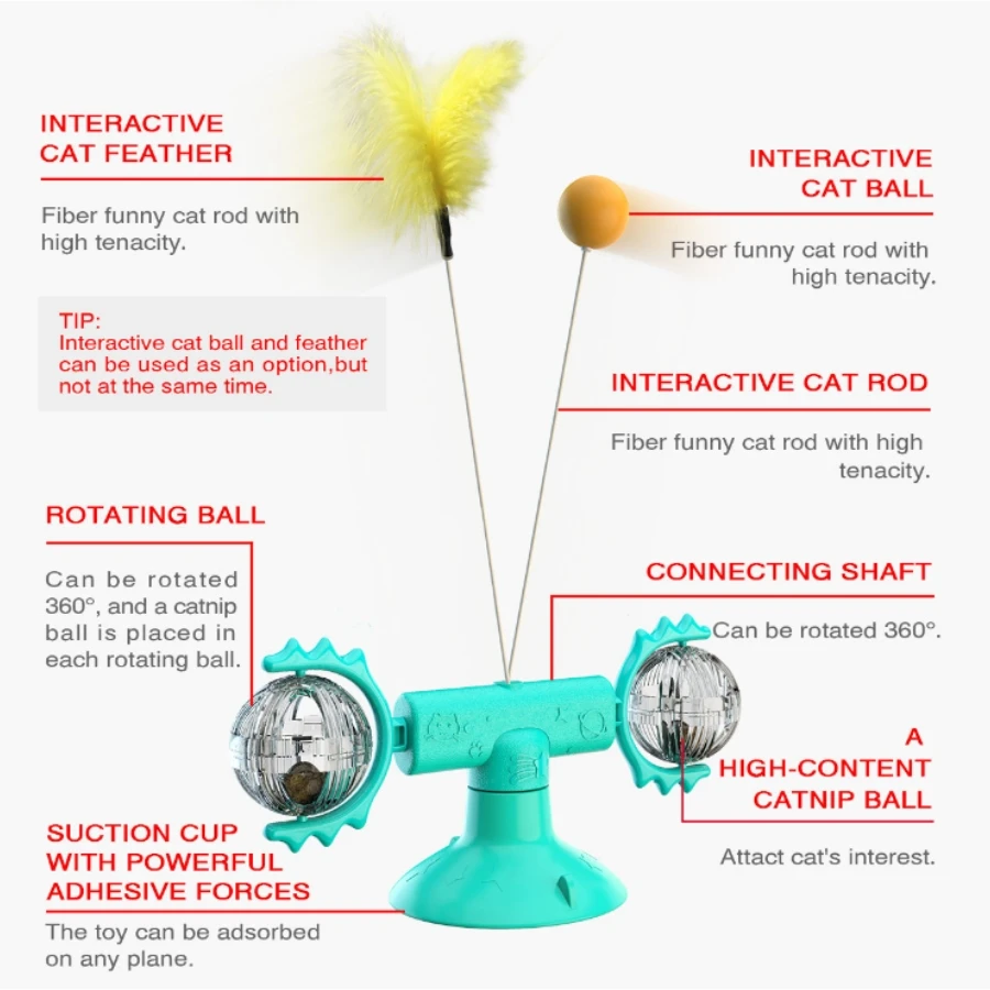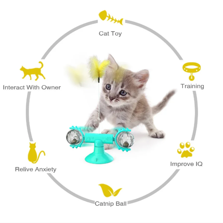 WhirlPurr Interactive Turntable Toy: Funny Cat Teaser with Suction Cup for Indoor Play and Stress Relief